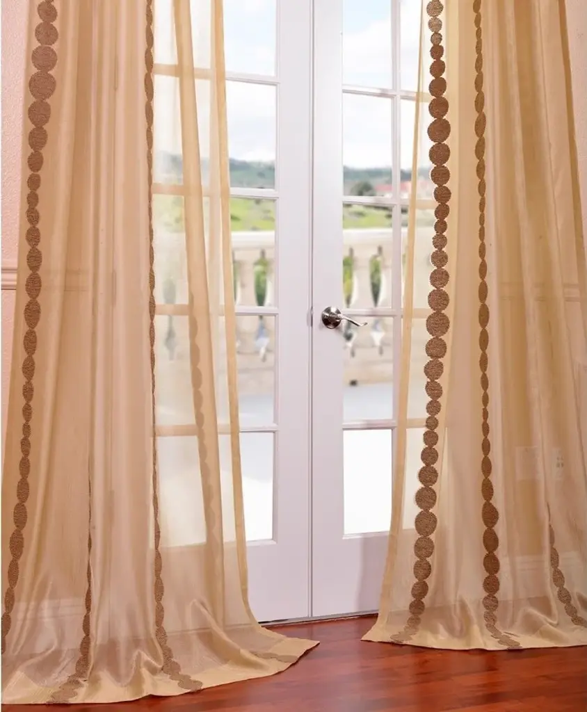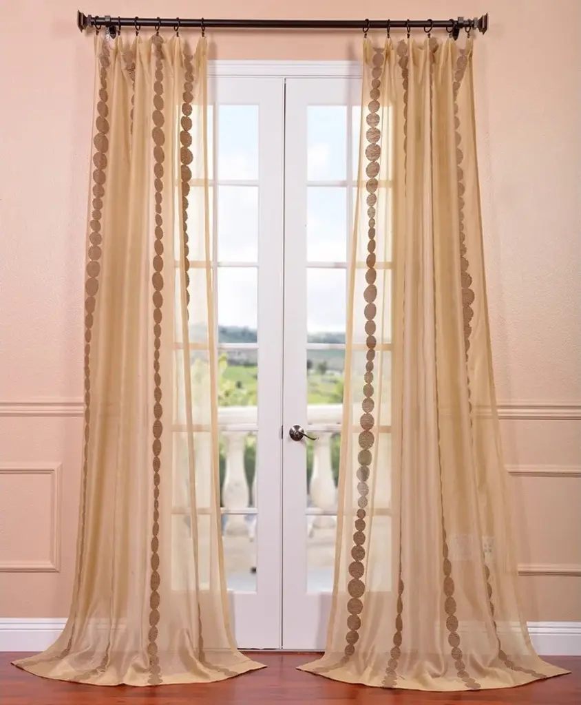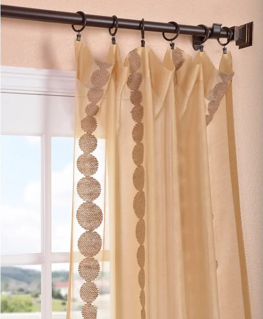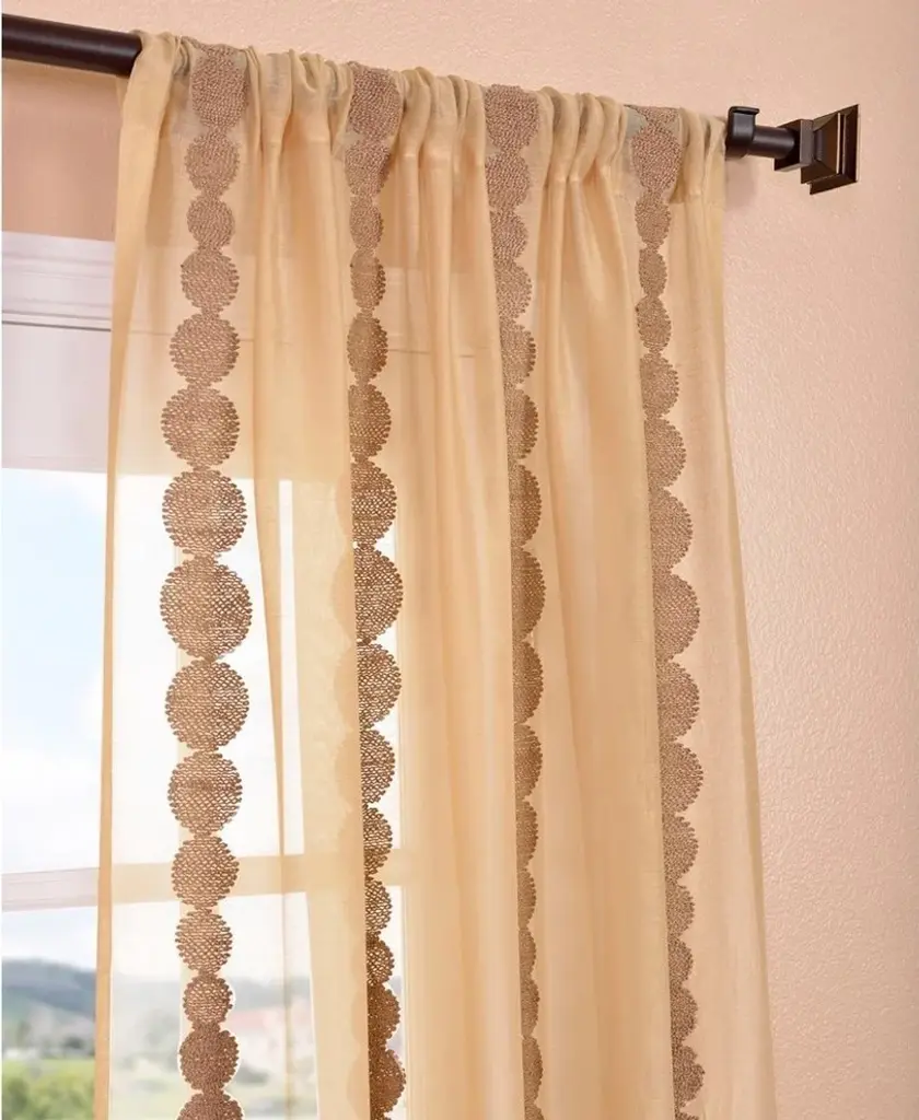 Cleopatra Gold Embroidered Sheer Curtain Single Panel, 50"x84"