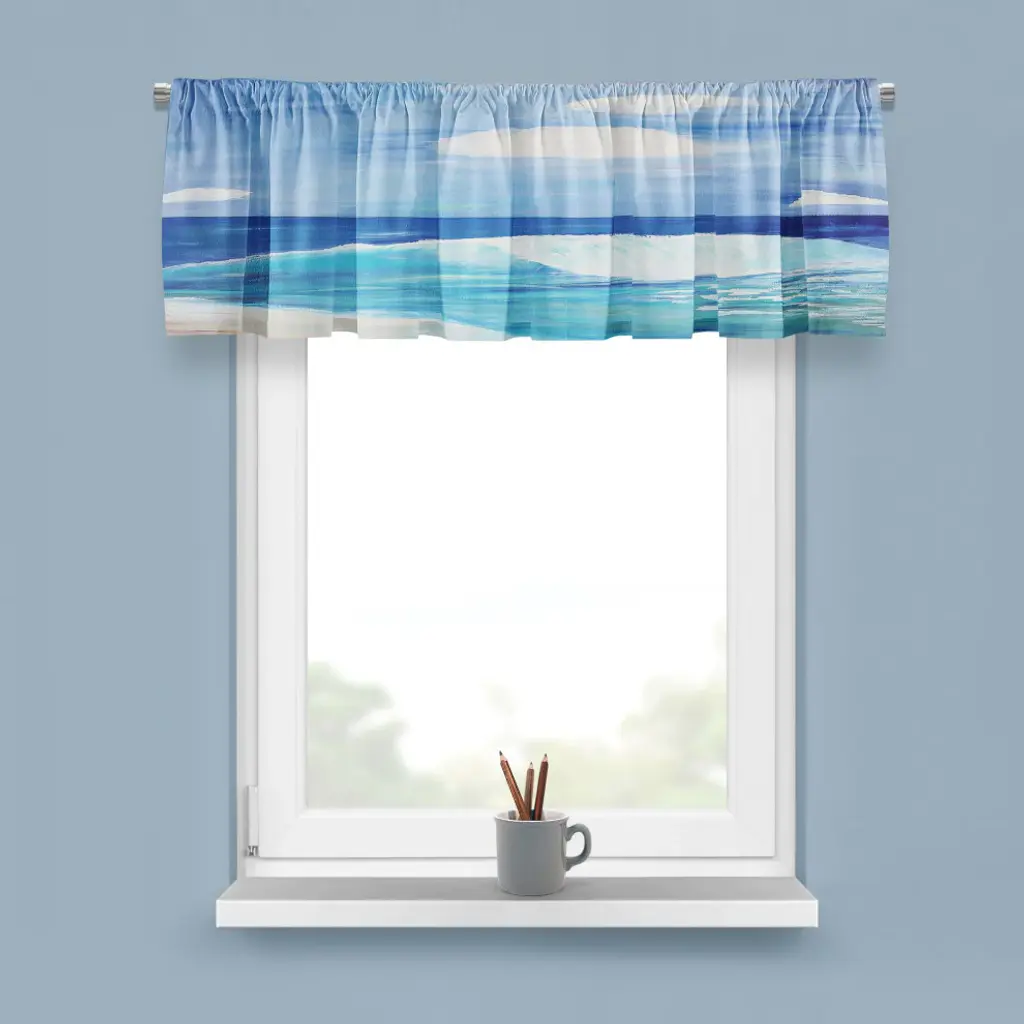 Coastal Beach Design Window Curtain Valance., Coastal Surf Wave