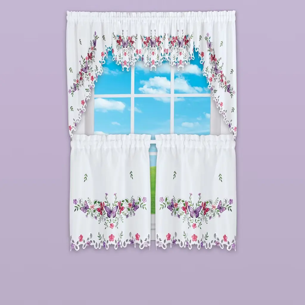 Collections Etc Embroidered Butterfly Garden Scalloped Edge Café Kitchen Curtains 24"l Tiers