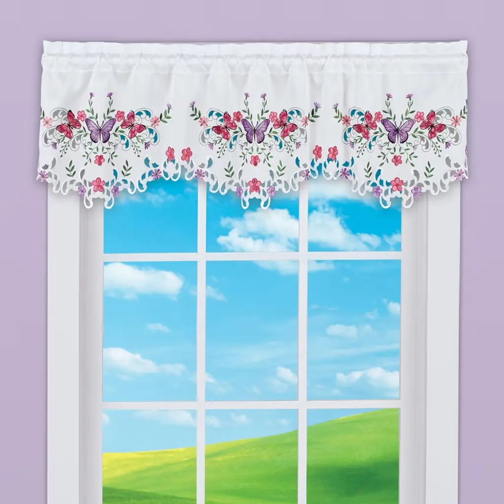 Collections Etc Embroidered Butterfly Garden Scalloped Edge Café Kitchen Curtains Valance