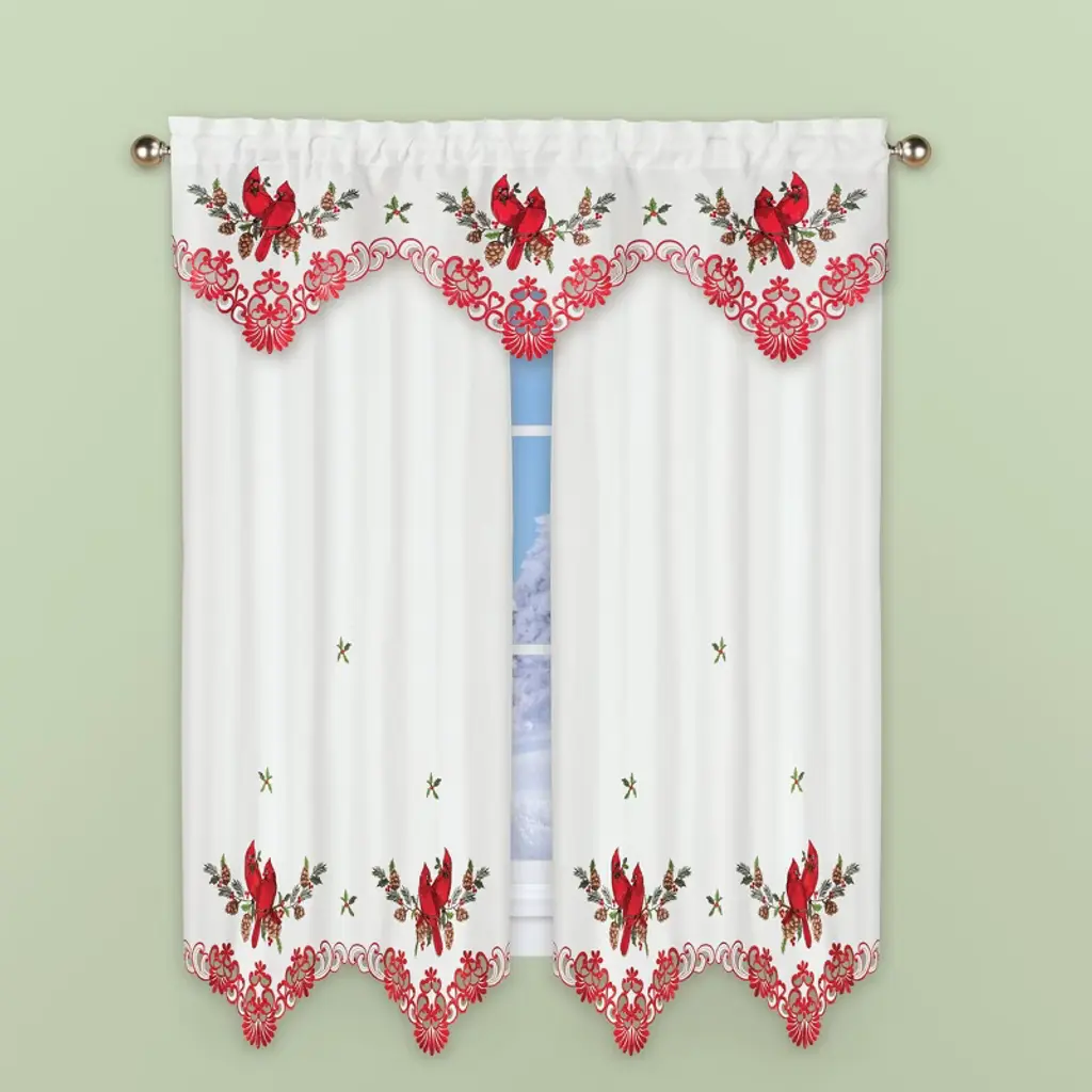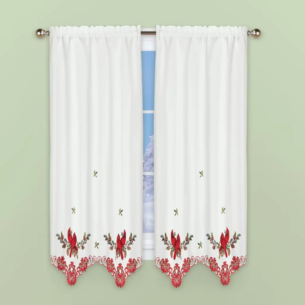 These Beautiful Curtains Feature Embroidered Cardinals With Lovely Holly Leaf Accents And Scrolling Details Along The Bottom Of The Panels And Valance. Panels Include Tiebacks (17 1/4"L X 2 1/4"W) And All Pieces Have Rod Pocket Tops For Easy Hanging. Machine Wash. Polyester; Imported. Choose: Valance (15 1/4"L X 56 1/4"W), 63" Panel Pair Set Of 2 (63"L X 41"W Each) Or 84" Panel Pair Set Of 2 (84"L X 41"W Each).