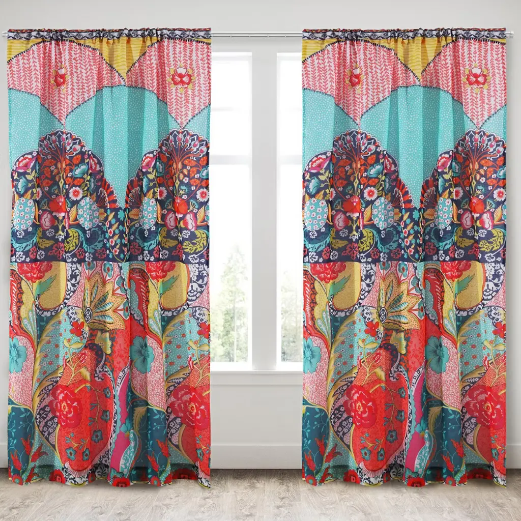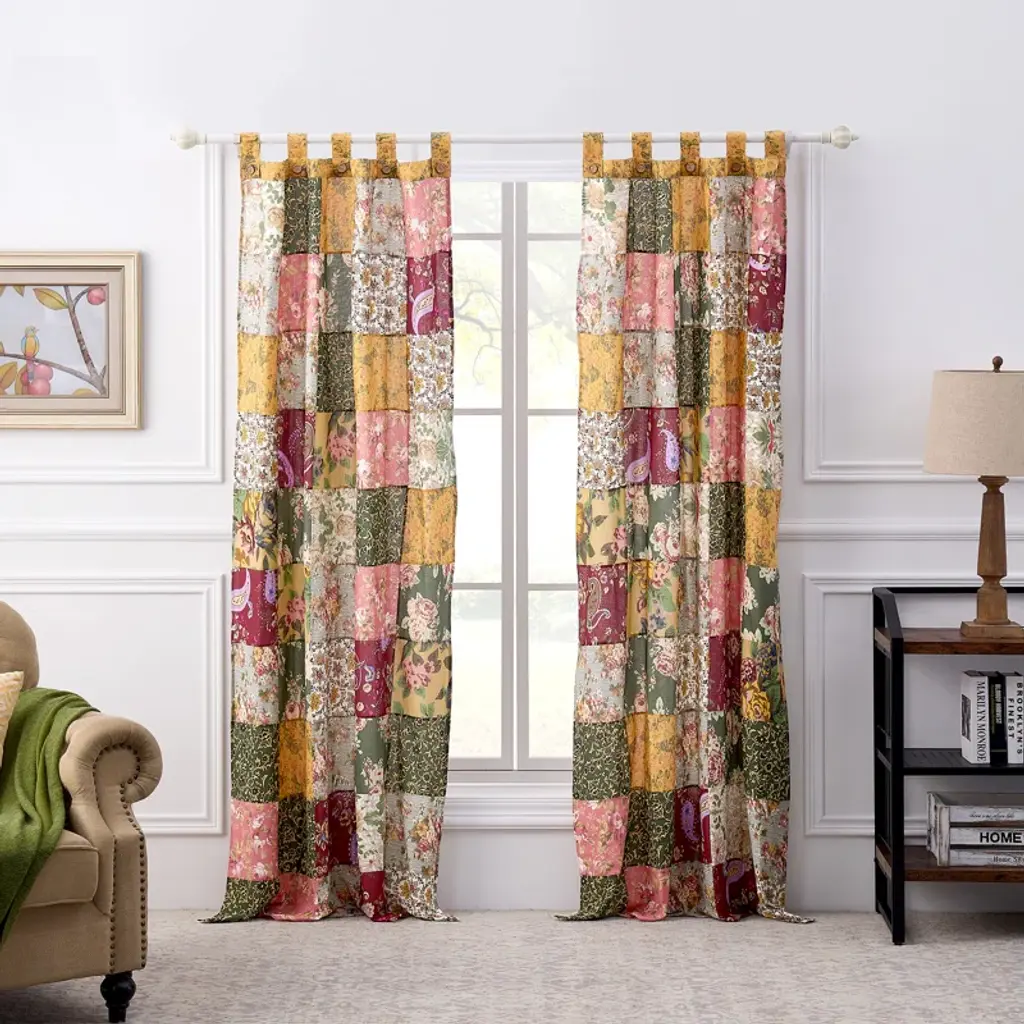 Loaded with charm, these patchwork style curtains dress your windows with timeless country style. Plaid, paisley and floral patches in shades of chocolate, maise yellow, ivory and light blue decorate these lovely curtains. Available as a valance and panels that come in two lengths. Valance and panel sold separately. Panels sold individually. Machine wash. Polyester; imported. Choose: Valance (16"L x 52"W), 63" Panel (63"L x 52"W) or 84" Panel (84"L x 52"W).