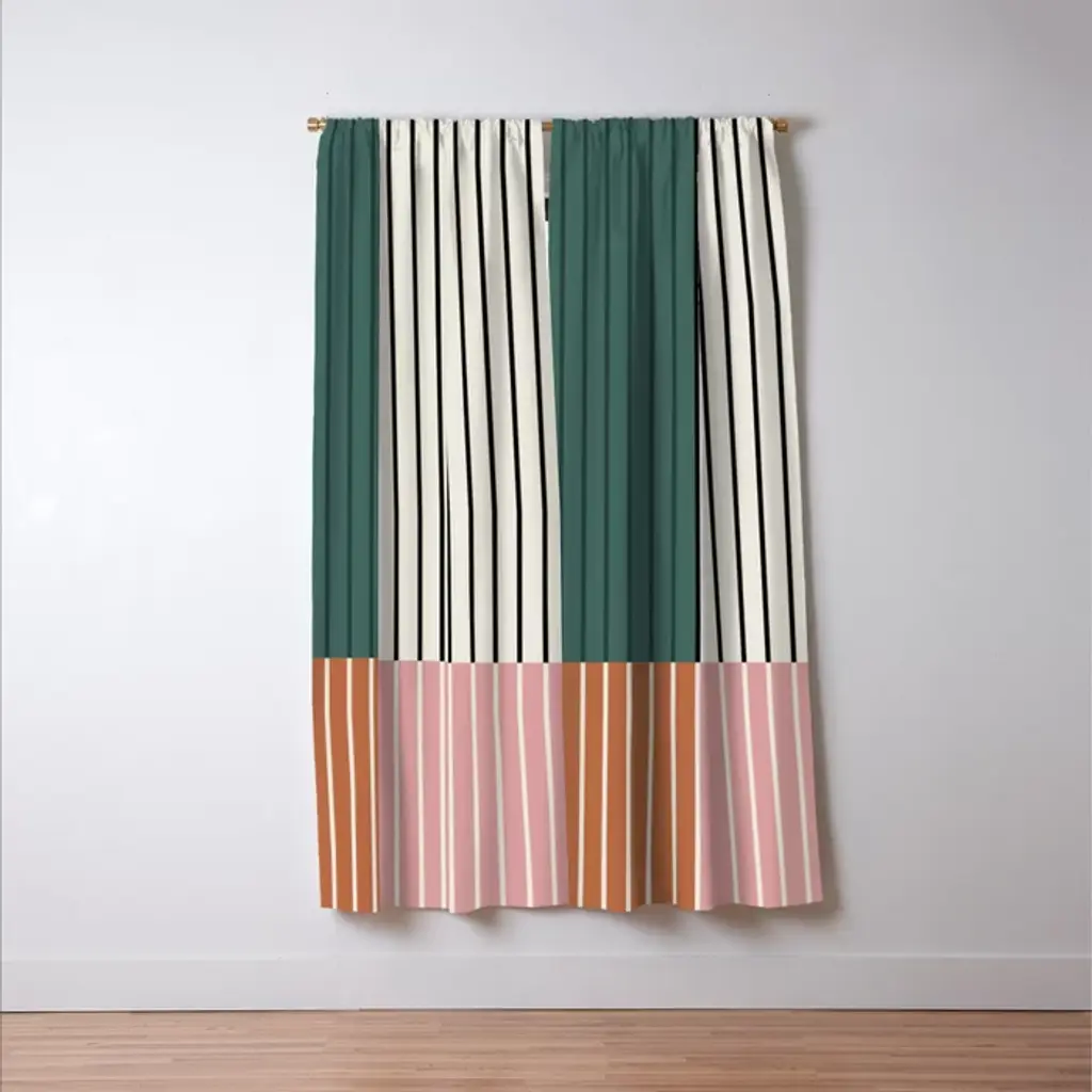 Color Block Line Abstract V Colorful Retro Curtain