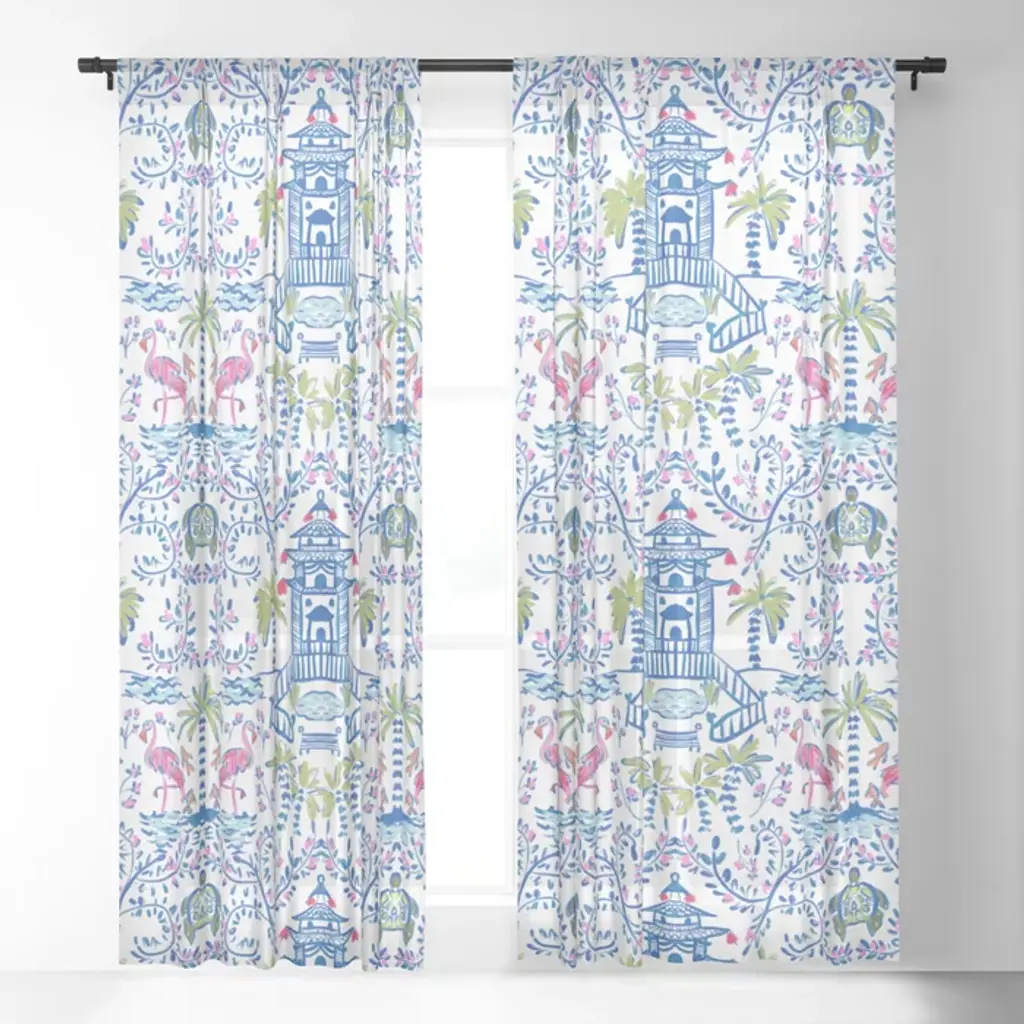 Blackout curtains are crafted with 100% woven polyester with a linen-like texture.Light-Filtering curtains are crafted with 100% mid-weight polyester.Sheer curtains are crafted with 100% lightweight polyester.Single sided print with white on reverse.Available in single or double panel options (double panels feature the same design on both).4" bottom pocket for easy hanging on any curtain rod (please note: artwork will appear upside down on non-patterned designs).Machine washable for easy care.Please note: Color variations may occur between on-site previews, your screen, and the printed fabric.Blackout, Light-Filtering, and Sheer Curtains are easy to care for:Machine wash cold.Use gentle cycle.Tumble dry low.SHIPPING: Items are made to order and typically ship within 3-4 business days. Click here for more information about delivery options.RETURNS: Return requests can be made within 30 days of your item(s) delivery. Click here for more information on returns.