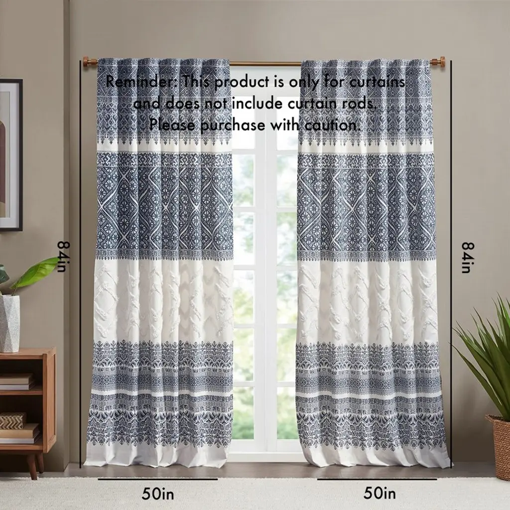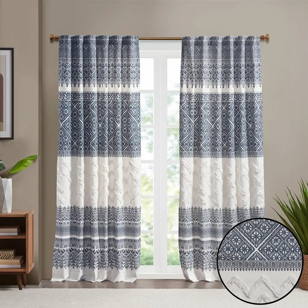 Description The INK+IVY Mila Cotton Printed Window Panel with Chenille Detail and Lining gives your home decor a chic boho touch. This natural white cotton window panel features an intricate global inspired print combined with rich tufted chenille detailing, for a textured artisanal look and feel. A lightweight white cotton lining on the reverse softly filters light, while providing better drapability and added privacy. In addtition, this 100% cotton curtain panel is also OEKO-TEX certified, meaning it does not contain any harmful substances or chemicals for the best in quality comfort and wellness. Each panel is finished with a rod pocket top for easy hanging, and back tabs for a more clean and tailored finish. This window panel is sold as a single and 2 window panels must be purchased to cover any standard size window. Complete the look with coordinating bedding sets, available and sold separately. Product Details 50x84" 1 Window Panel:50"W x 84"L Material 100% cotton, printed and tufted with chenille, with cotton lining on the back. Finished with rod pockets and back tabs; fits up to 1.25 inches diameter rod.