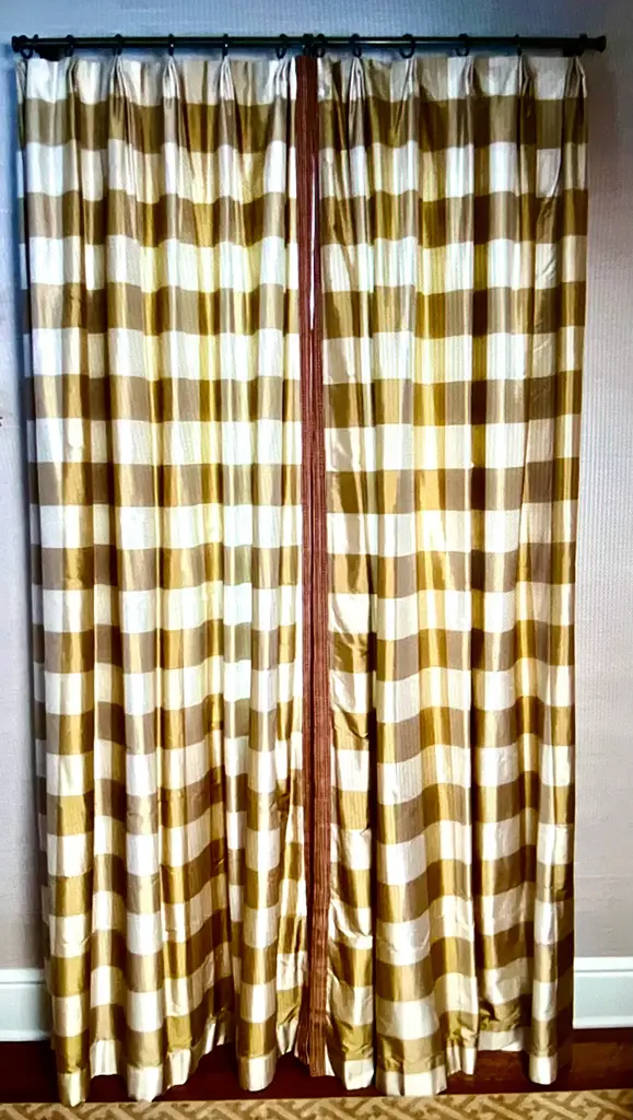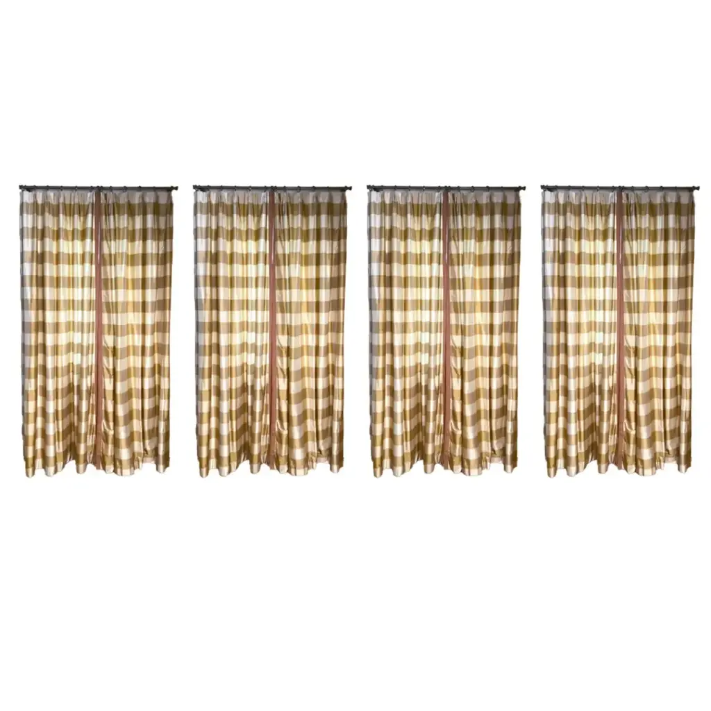 Cowtan & Tout Gold Plaid Silk Curtains-3 Pairs Available