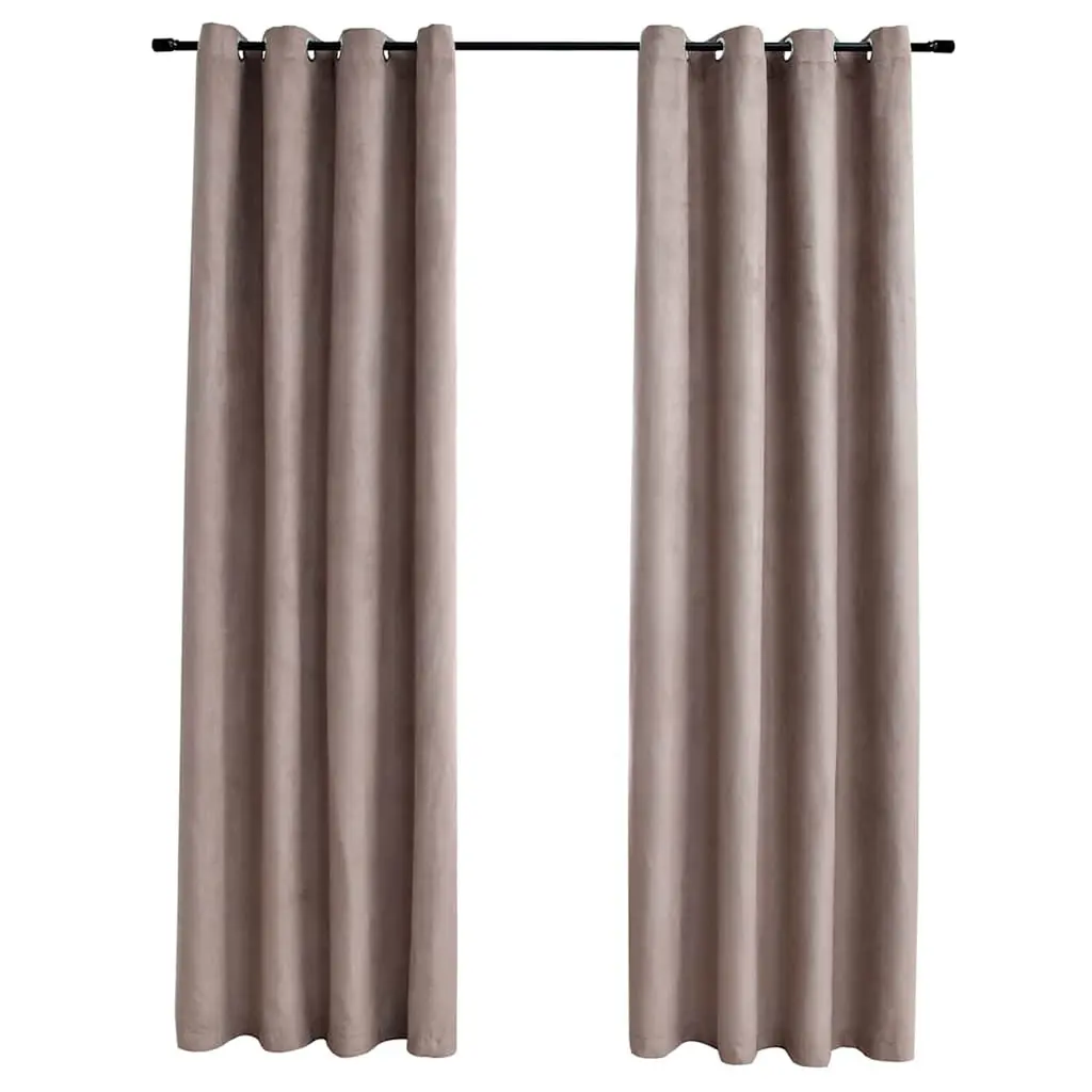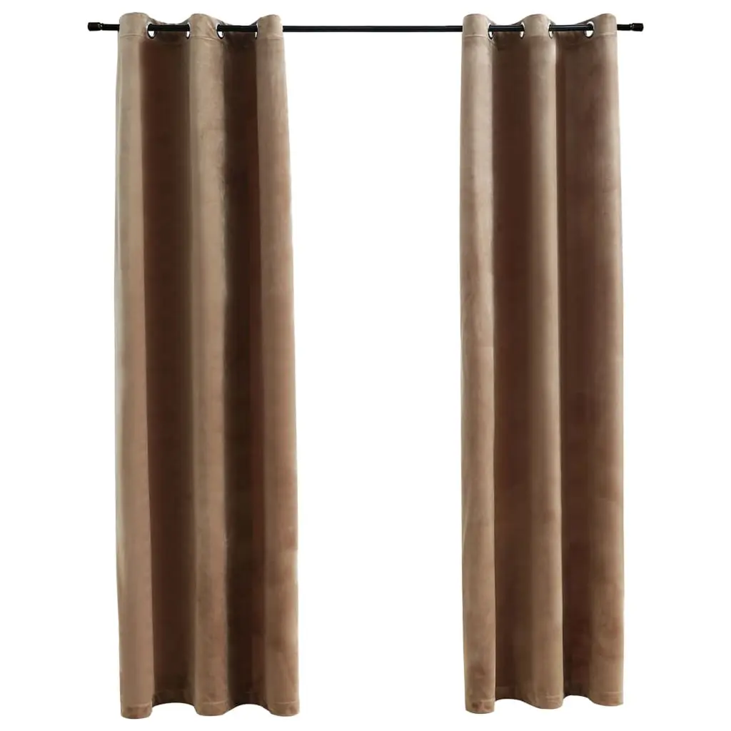 Bring a subtle luxe look to a room with this set of two room darkening curtain panels in a soft velvet finish that is machine washable. Each 52??x84?? curtain panel is made from room-darkening material to help filter out the light, giving a cozy ambiance to a space. The 8 silver metal grommets on each panel makes it a quick setup and the simple elegant lines of these beige curtains are versatile enough to hang in a livingroom, bedroom, or dining room. Curtain rod not included and must be purchased separately.SKU:MONA-I 9820
