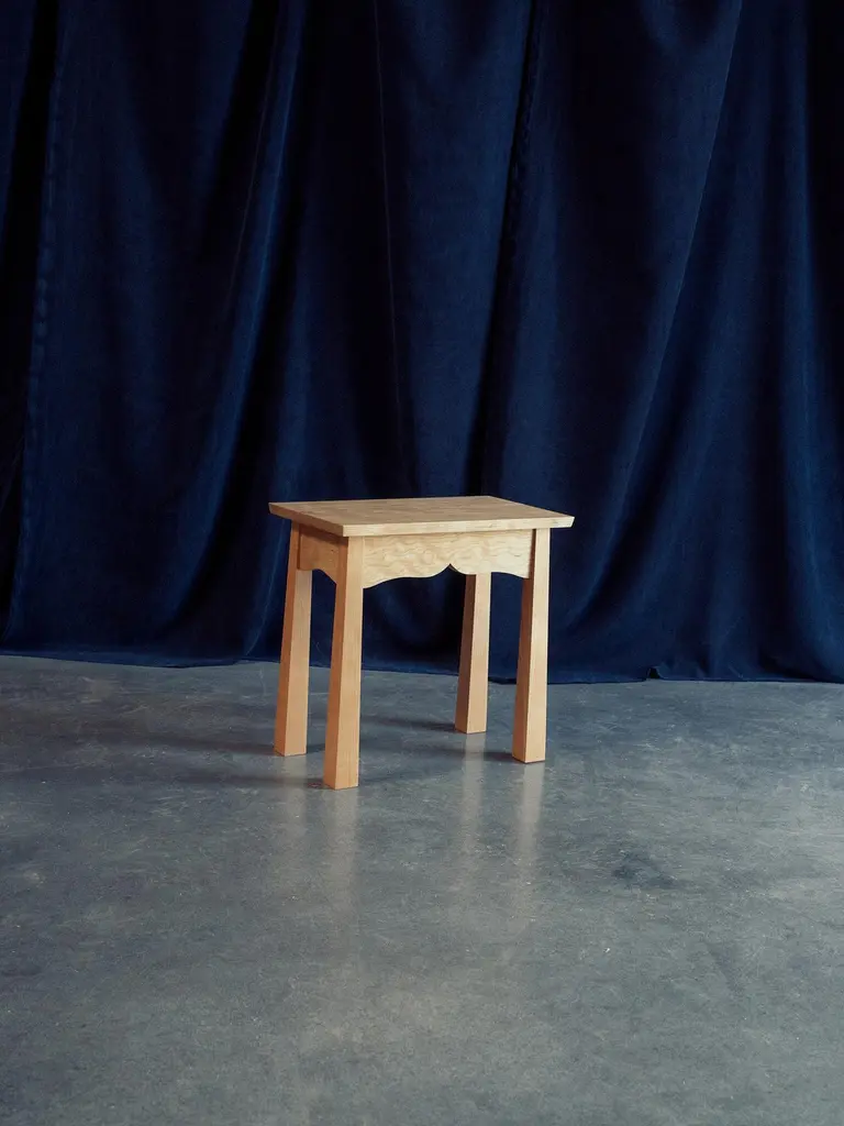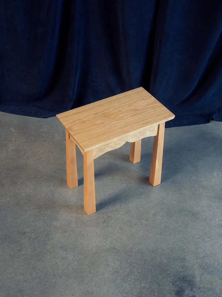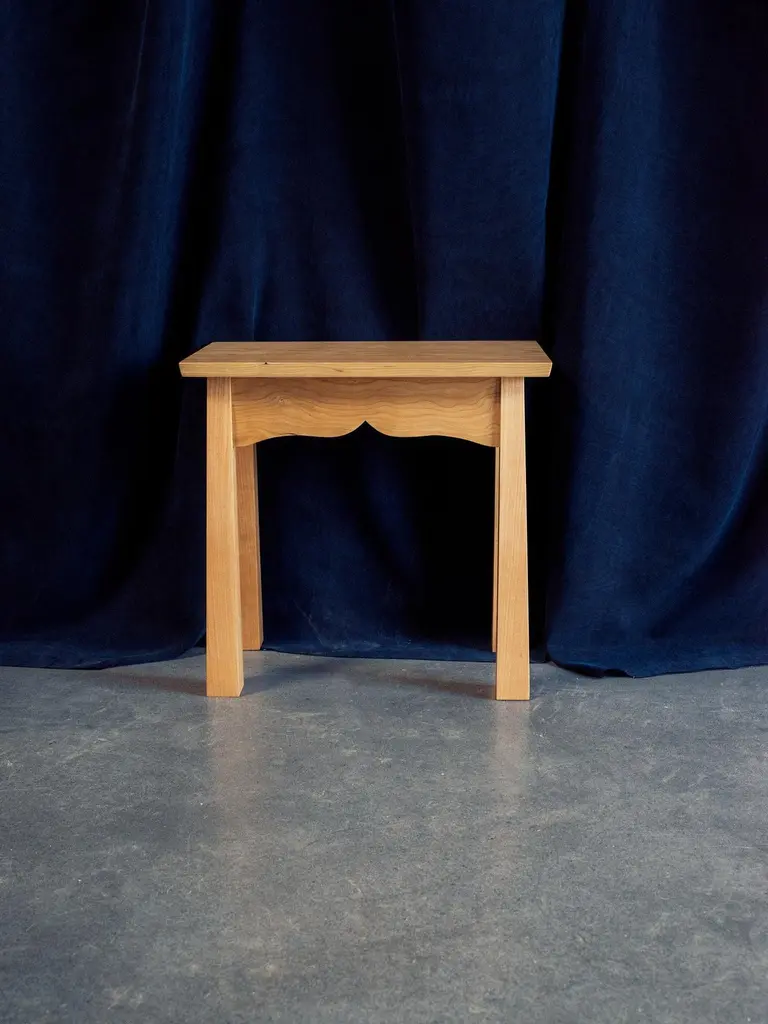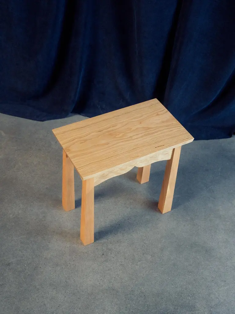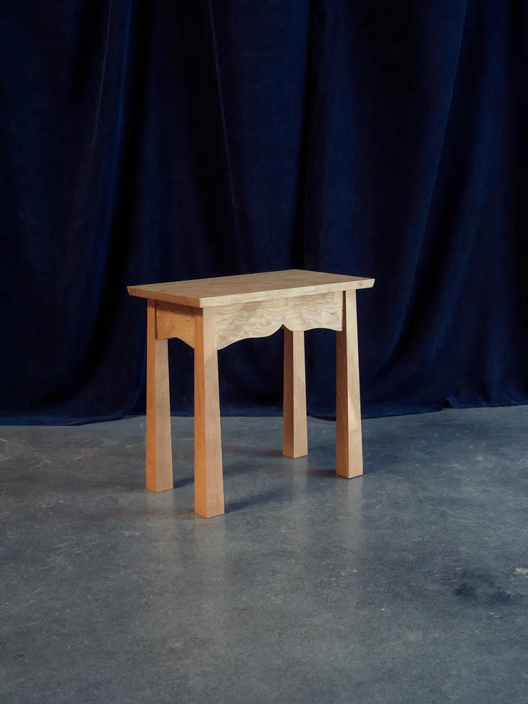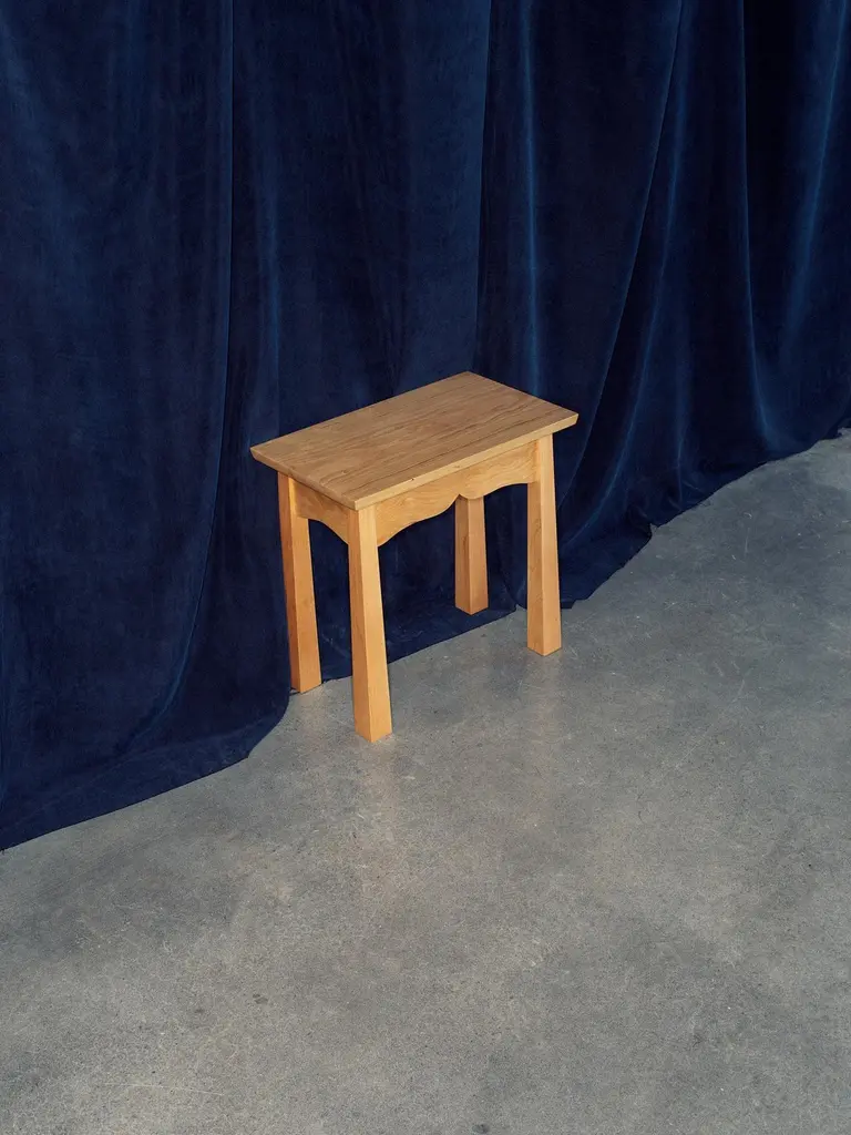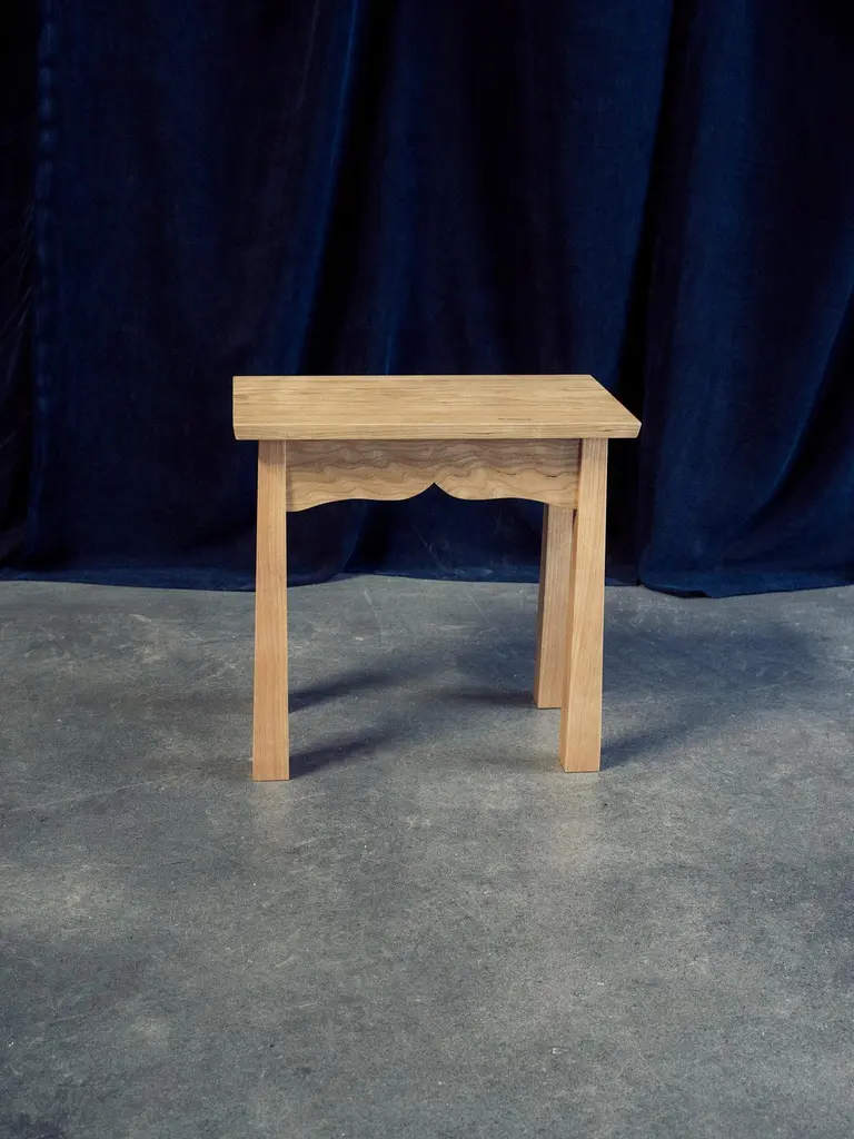 Curtain Tea Table by Nick SugiharaDimensions: D 27.94 x W 45.72 x H 45.72 cm. Materials: Oiled cherry wood.Available in cherry, oak, and walnut. Please contact us.Sugihara Fine Furniture is a small furniture and interior studio based in San Diego, CA. We specialize in solid wood heirloom pieces, combining traditional techniques with a contemporary design sensibility.Each piece is built one at a time utilizing both hand and power tools. Everything you see is available in a variety of wood species if you have something specific in mind. We consider each piece one-of-a-kind because of the variable nature of the timber we use and the individual attention it demands.The finish we use is a penetrating oil finish that is non-toxic and food-safe once fully cured.