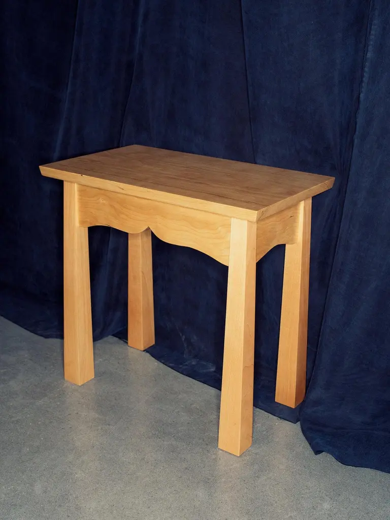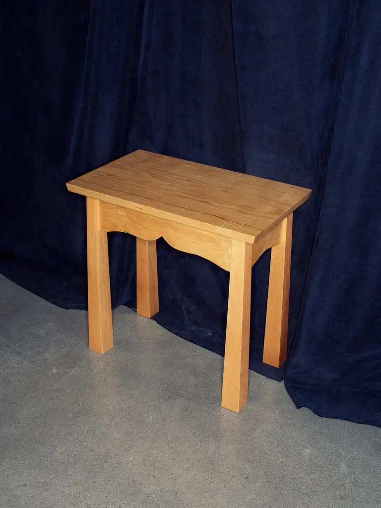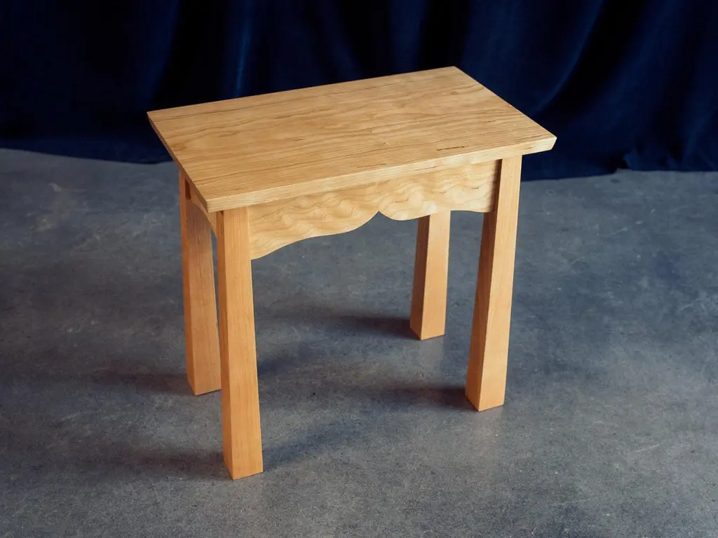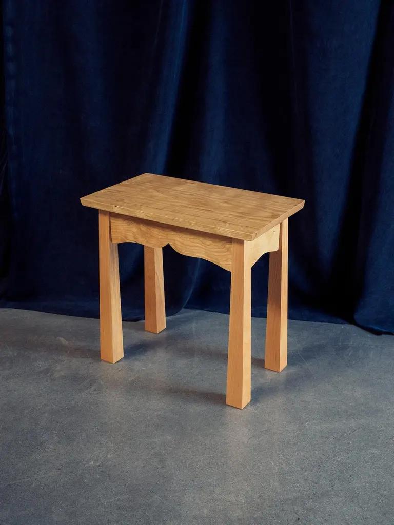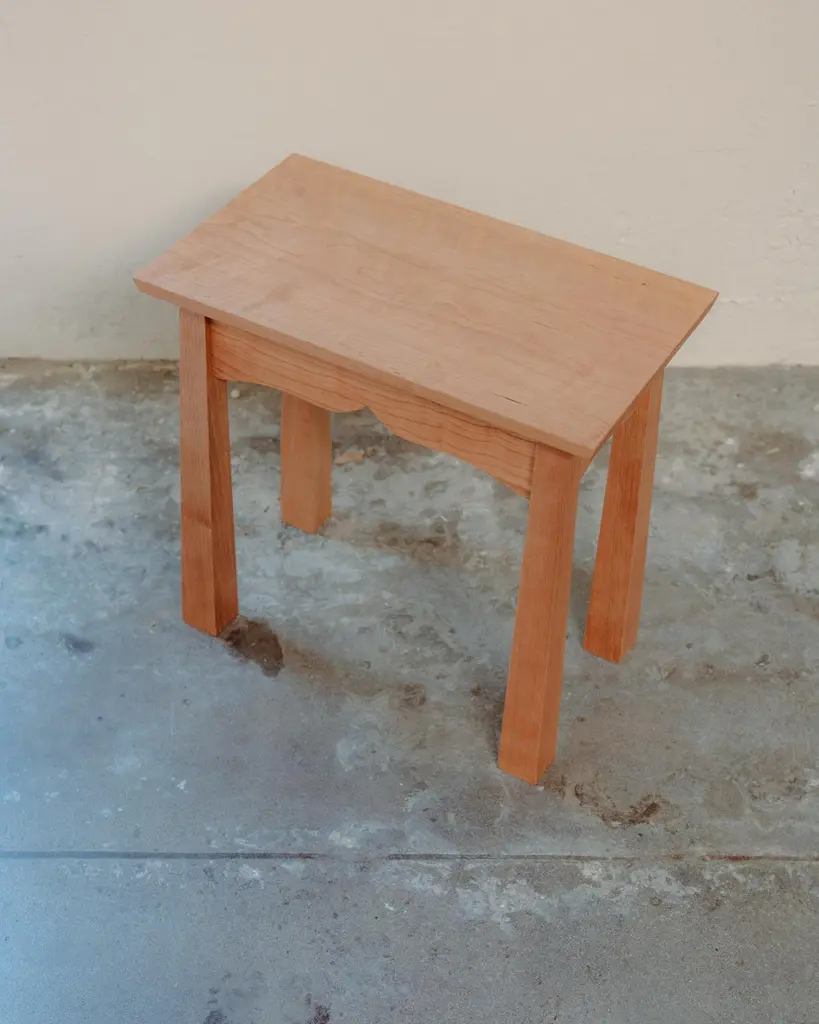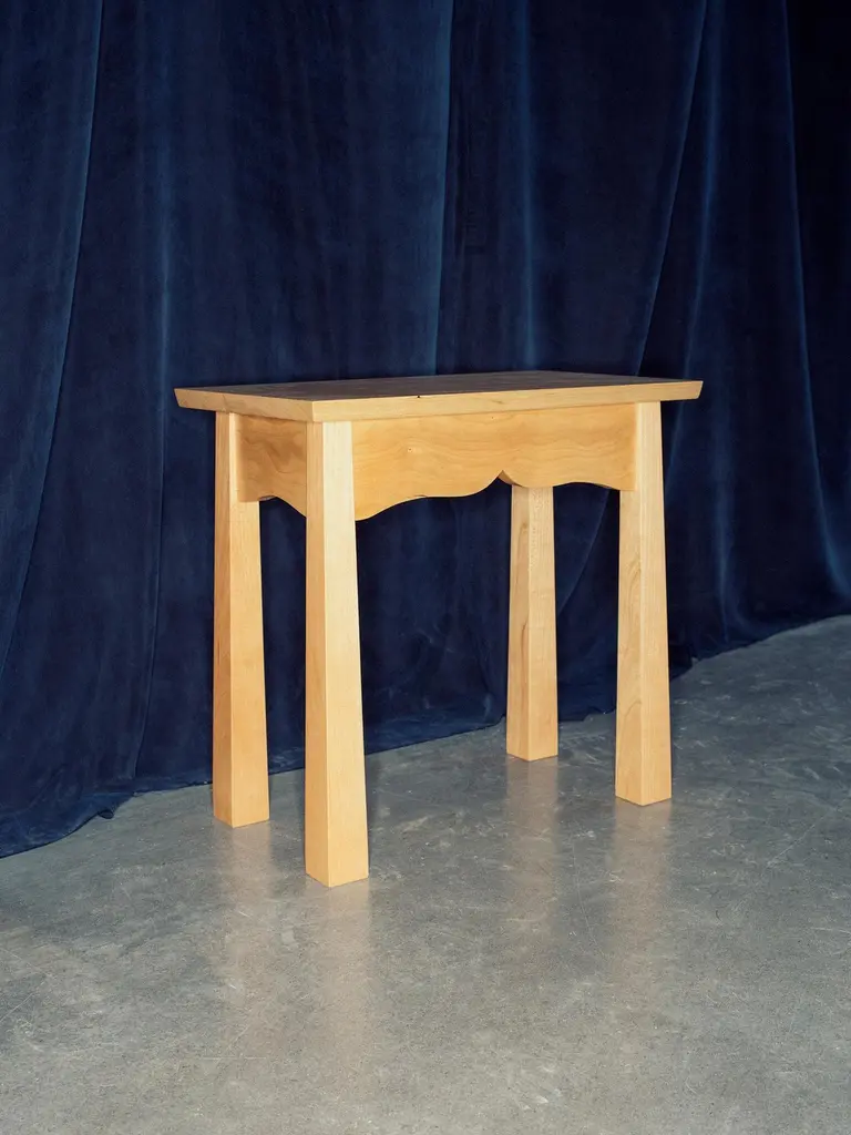 Curtain Tea Table by Nick SugiharaDimensions: D 27.94 x W 45.72 x H 45.72 cm. Materials: Oiled cherry wood.Available in cherry, oak, and walnut. Please contact us.Sugihara Fine Furniture is a small furniture and interior studio based in San Diego, CA. We specialize in solid wood heirloom pieces, combining traditional techniques with a contemporary design sensibility.Each piece is built one at a time utilizing both hand and power tools. Everything you see is available in a variety of wood species if you have something specific in mind. We consider each piece one-of-a-kind because of the variable nature of the timber we use and the individual attention it demands.The finish we use is a penetrating oil finish that is non-toxic and food-safe once fully cured.