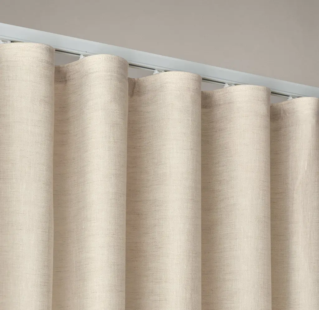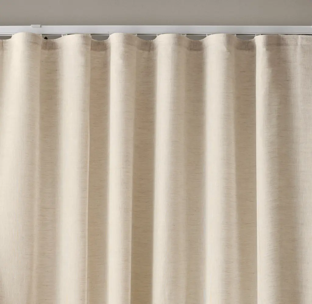 Professional Design & Measure Services.* Free Installation for a Limited Time.* *Appointment availability and lead times vary by region. Window treatments ship free in 2 weeks. Select Colors on Sale: Mocha, Charcoal, Spruce and Indigo For help with ordering, or to schedule a measure or installation, please contact us via email at customwindows@rh.com or by calling 888.669.2809. Custom Ripple-Fold drapery features soft folds of fabric that glide effortlessly along a custom track (sold separately), creating a contemporary look that's ideal for ceiling-to-floor drapery or expansive coverage. Designed and handcrafted in the USA, the panels are customizable to the ¼" with a generous amount of fabric for built-in fullness. Use our drapery alone, or layer the panels with our custom shades. IMPORTANT: Custom Ripple-Fold drapery is designed exclusively for use with our custom Logan, Essex or Standard track hardware systems (sold separately; shop all options here). In order for the drapery and hardware to be compatible, you must ensure that you provide the same drapery and track width measurements, panel configuration and window labels on both your custom drapery and custom track hardware orders.