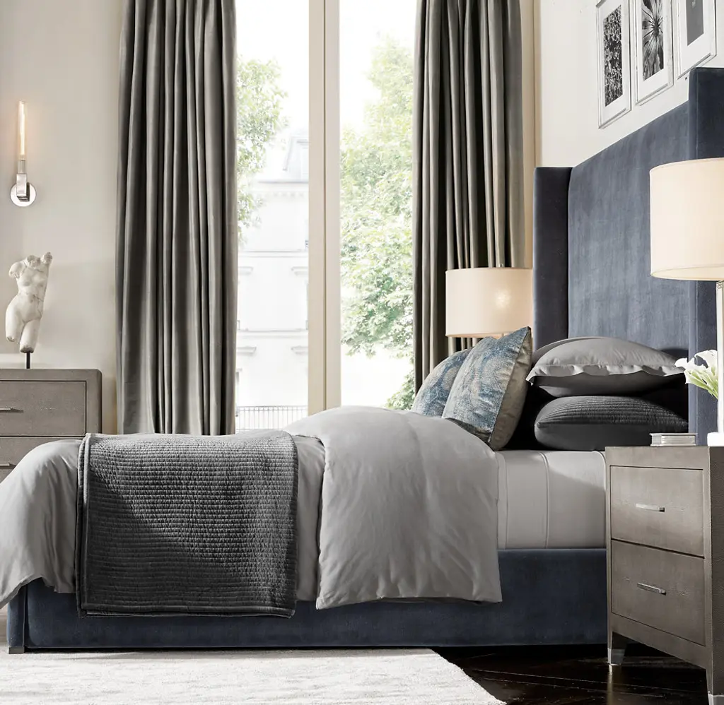 Professional Design & Measure Services.* Free Installation for a Limited Time.* *Appointment availability and lead times vary by region. Window treatments ship free in 2 weeks. Select Colors on Sale: Pearl and Chocolate For help with ordering, or to schedule a measure or installation, please contact us via email at customwindows@rh.com or by calling 888.669.2809. Our custom Grommet-Top drapery is a modern style with deep folds that frame a window while leaving the hardware partially exposed. Designed and handcrafted in the USA, the panels are customizable to the ¼" with a generous amount of fabric for built-in fullness. Use our drapery alone, or layer the panels with our custom shades.