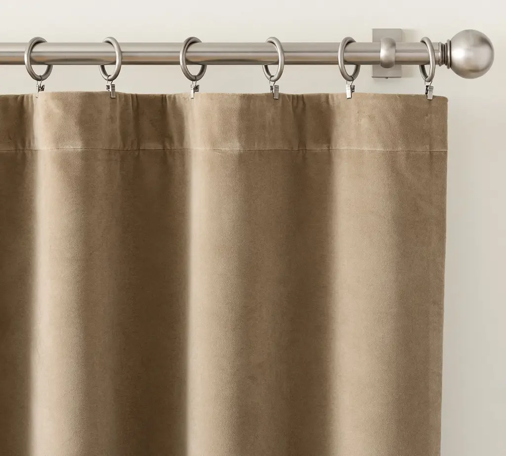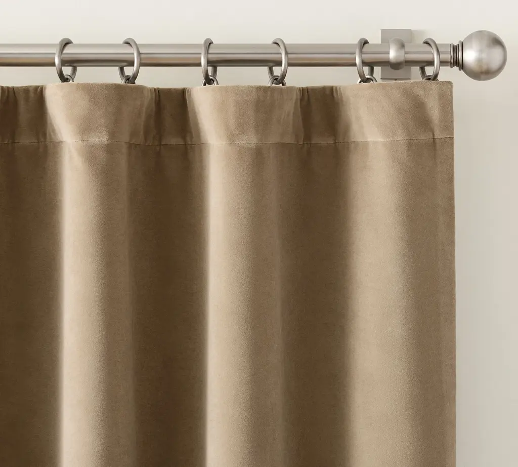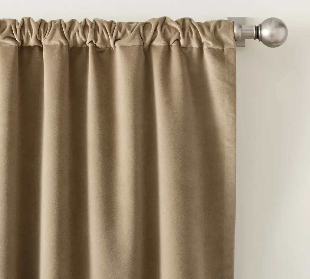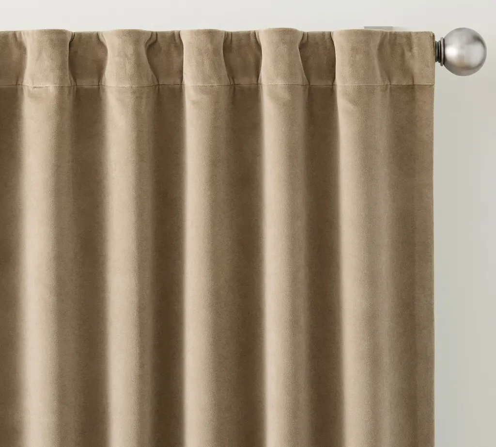 Stunning from floor to ceiling. The richly dense fabric is perfect for keeping sunlight at bay. Woven of cotton velvet, these curtains add a layer of luxe and a pop of sheen.