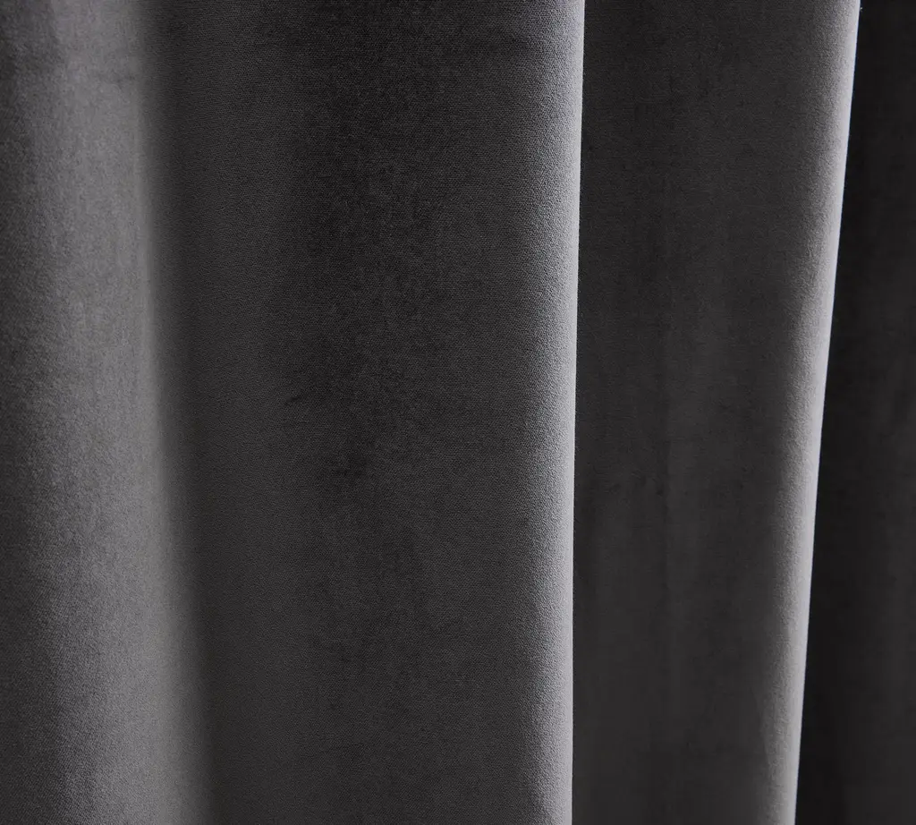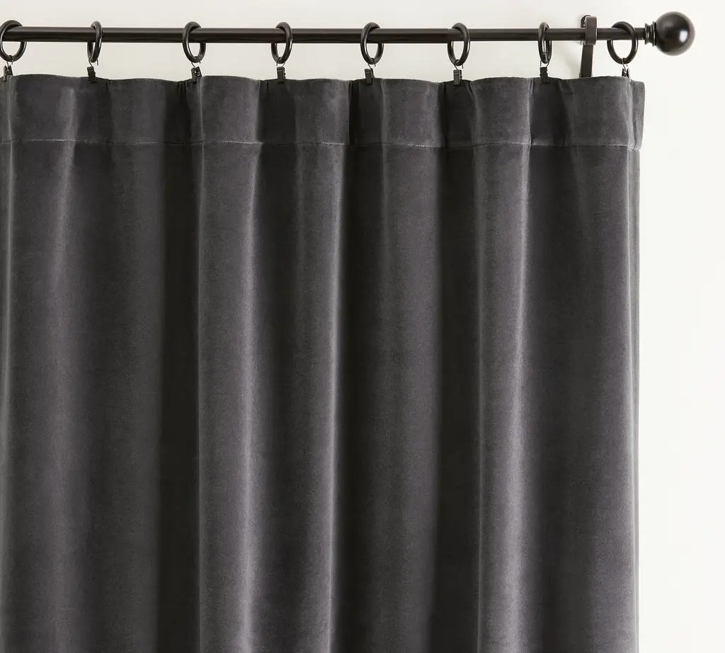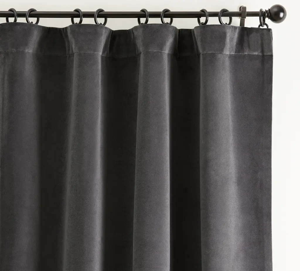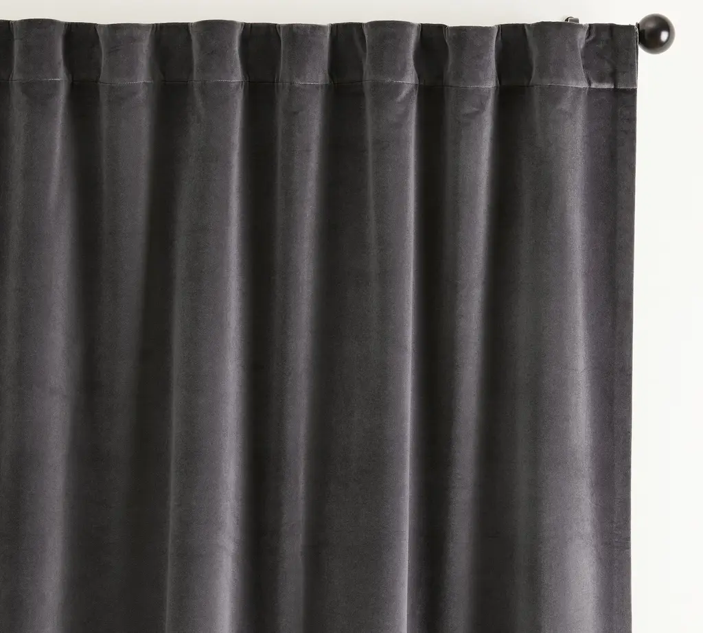 Stunning from floor to ceiling. The richly dense fabric is perfect for keeping sunlight at bay. Woven of cotton velvet, these curtains add a layer of luxe and a pop of sheen.