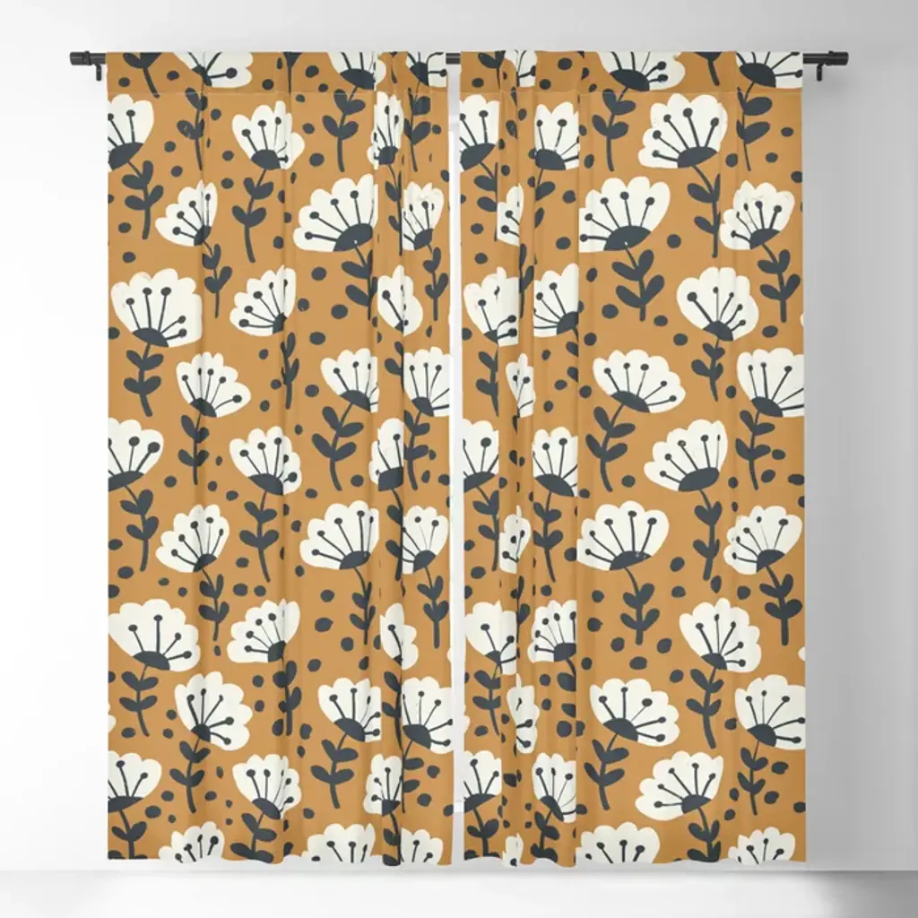 Blackout curtains are crafted with 100% woven polyester with a linen-like texture.Light-Filtering curtains are crafted with 100% mid-weight polyester.Sheer curtains are crafted with 100% lightweight polyester.Single sided print with white on reverse.Available in single or double panel options (double panels feature the same design on both).4" bottom pocket for easy hanging on any curtain rod (please note: artwork will appear upside down on non-patterned designs).Machine washable for easy care.Please note: Color variations may occur between on-site previews, your screen, and the printed fabric.Blackout, Light-Filtering, and Sheer Curtains are easy to care for:Machine wash cold.Use gentle cycle.Tumble dry low.SHIPPING: Items are made to order and typically ship within 3-4 business days. Click here for more information about delivery options.RETURNS: Return requests can be made within 30 days of your item(s) delivery. Click here for more information on returns.