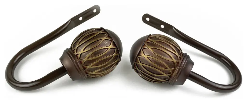 Elevate the style and functionality of your window treatment with Central Design Products latest addition - the 13/16" rod matching holdbacks. Our holdback pair is designed to add a refined touch to your home decor, while also serving a practical purpose. Each set includes a pair of decorative holdbacks and mounting hardware for easy installation. Our holdbacks feature a stunning resin finial, adding an alluring style to your curtains. Crafted with steel hooks and resin finials, our holdbacks are built to last and provide reliable support to your curtains. Upgrade your window treatment with these matching holdbacks and enjoy a refined and sophisticated touch to your home decor. Order now to experience the difference! Finial measurements: 2-3/4"Wx2-1/4"Hx1-1/2"D J-hook projection: 3 inches J-hook measurements: 5.75"Lx3"W
