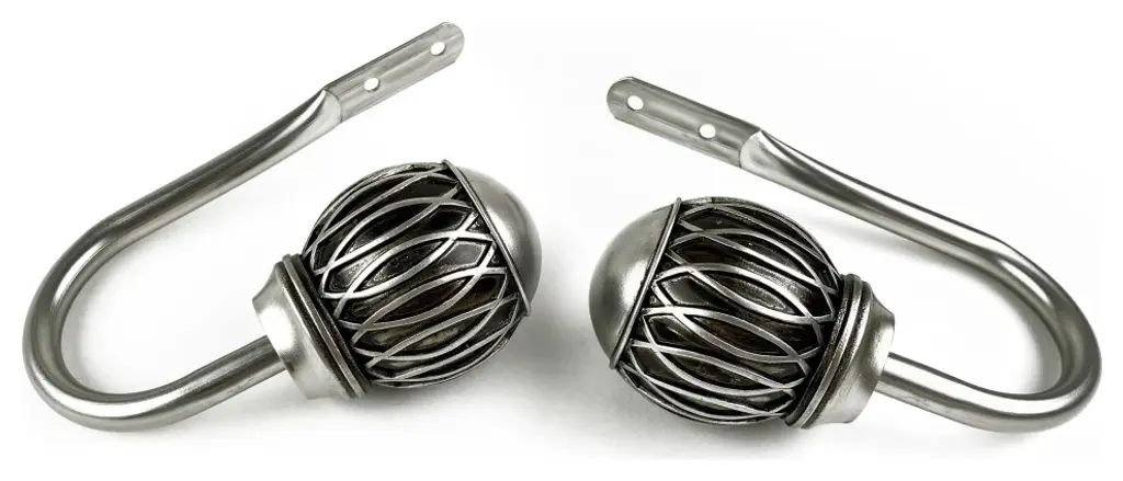 Elevate the style and functionality of your window treatment with Central Design Products latest addition - the 13/16" rod matching holdbacks. Our holdback pair is designed to add a refined touch to your home decor, while also serving a practical purpose. Each set includes a pair of decorative holdbacks and mounting hardware for easy installation. Our holdbacks feature a stunning resin finial, adding an alluring style to your curtains. Crafted with steel hooks and resin finials, our holdbacks are built to last and provide reliable support to your curtains. Upgrade your window treatment with these matching holdbacks and enjoy a refined and sophisticated touch to your home decor. Order now to experience the difference! Finial measurements: 2-3/4"Wx2-1/4"Hx1-1/2"D J-hook projection: 3 inches J-hook measurements: 5.75"Lx3"W