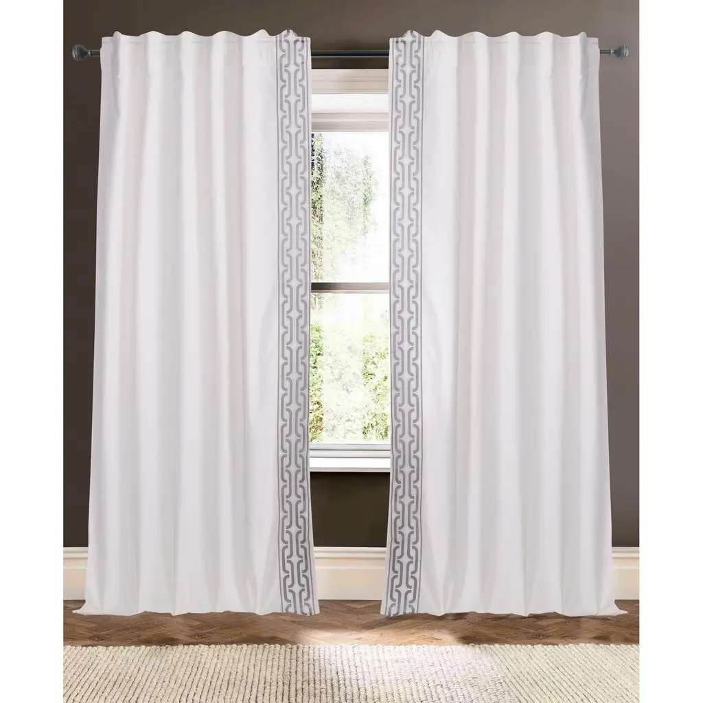 Silver + gold hues beautifully embroider the trim of these drapes. From bedroom to living spaces, these panels deliver beautiful framing or coverage for windows.