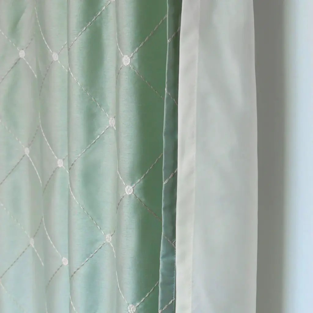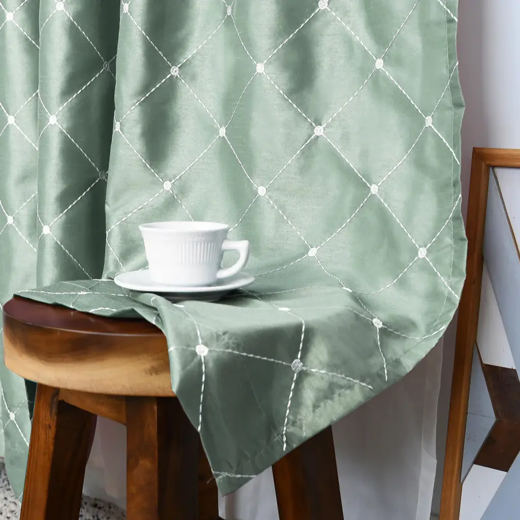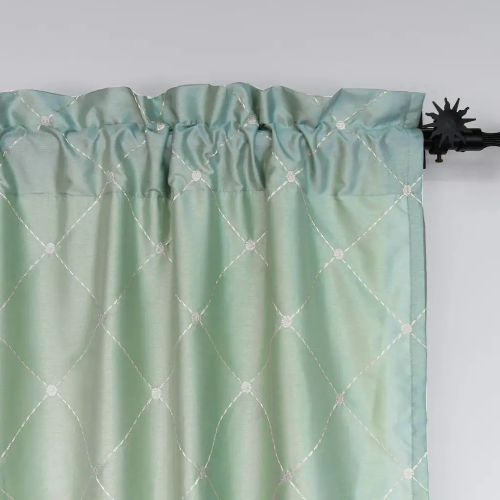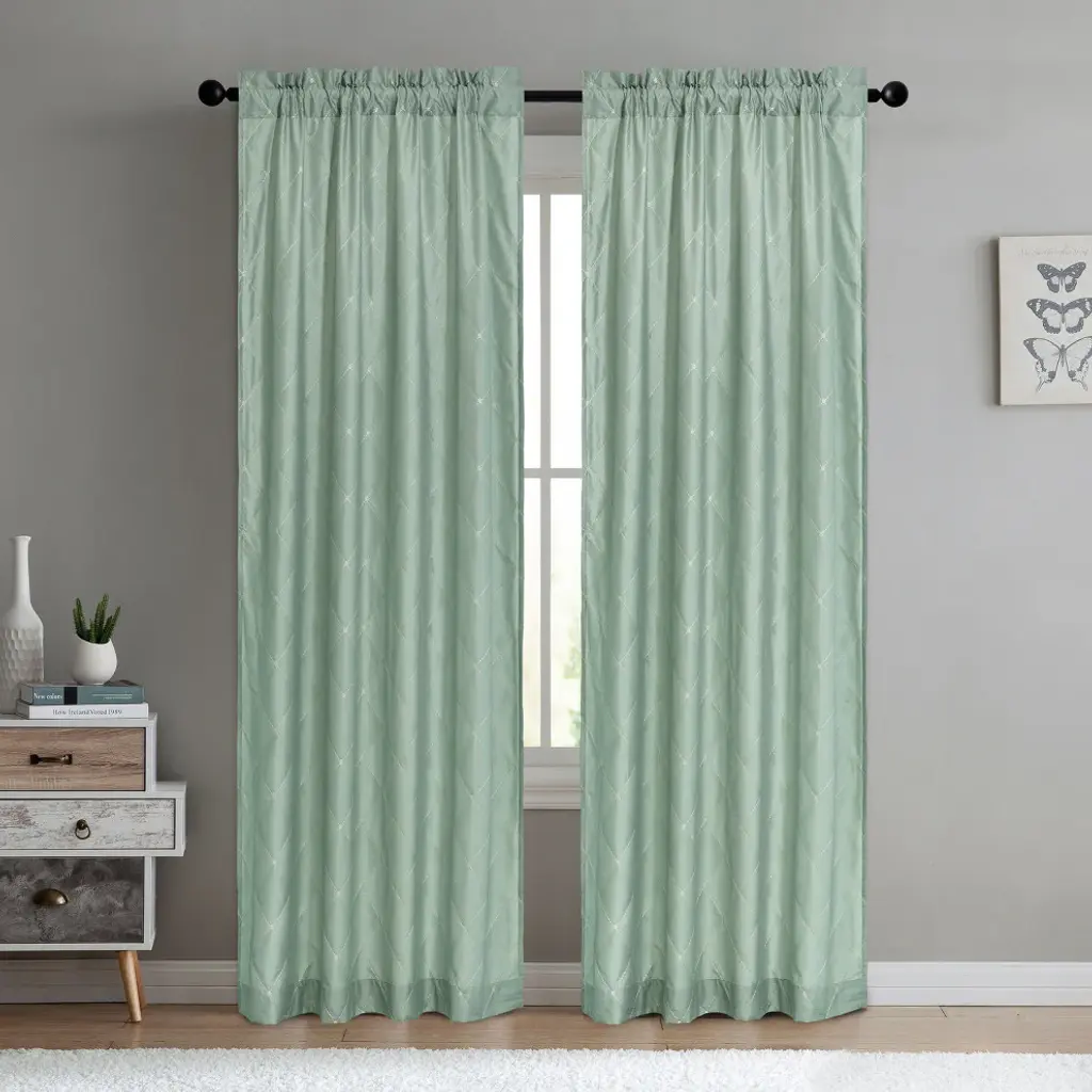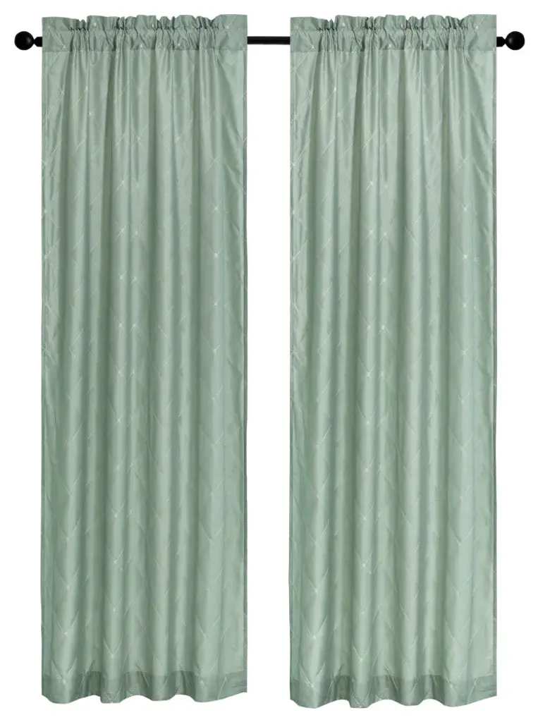 SOFTLY DIFUSE LIGHT While Still Allowing Sunlight To Pass Through Highlighting The Lovely Embroidered Patterns Of These Charming Curtains. CARING FOR YOUR CURTAINS: 100% Polyester ; Wash all same color panels at the same time ; Machine wash cold on gentle cycle with like colors ; Non-chlorine bleach only when needed ; Tumble dry on lowest heat setting and remove promptly ; Iron on lowest heat setting if needed(2) Doris Embroidery Diamond Faux Silk Curtain Panels: 60" x 96" or 60" x 84"SOFTLY DIFUSE LIGHT While Still Allowing Sunlight To Pass Through Highlighting The Lovely Embroidered Patterns Of These Charming Curtains.BEAUTIFUL SHEER CURTAIN SETS Come In Sets Of 2 In An Array Of Colors And Patterns To Suit Almost Anyone''s Home Or Office.CARING FOR YOUR CURTAINS: 100% Polyester ; Wash all same color panels at the same time ; Machine wash cold on gentle cycle with like colors ; Non-chlorine bleach only when needed ; Tumble dry on lowest heat setting and remove promptly ; Iron on lowest heat setting if neededWe Recommend For Proper Fullness Fabric Should Measure 1.5-2 Times The Width Of Your Window.