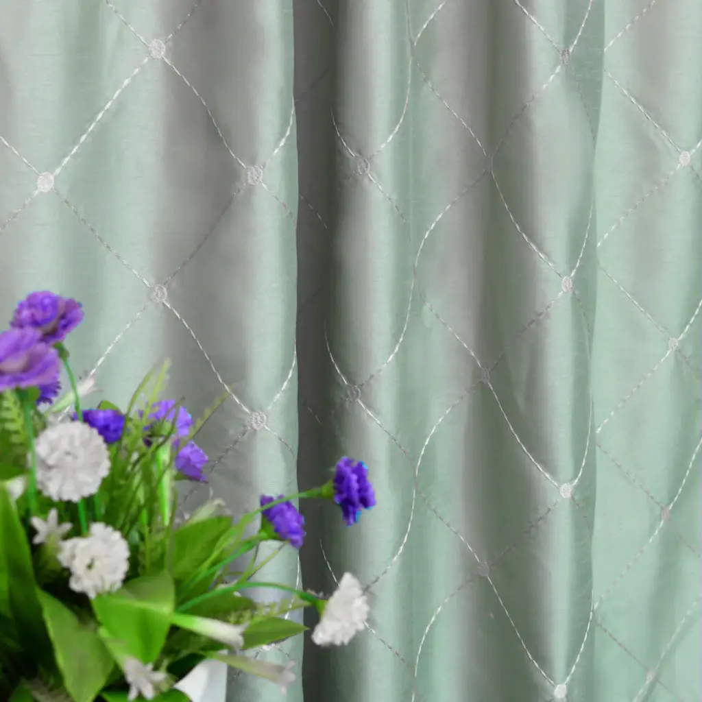 Doris Diamond Embroidery Faux Silk Curtain Set, Silver Blue, 60"x96"