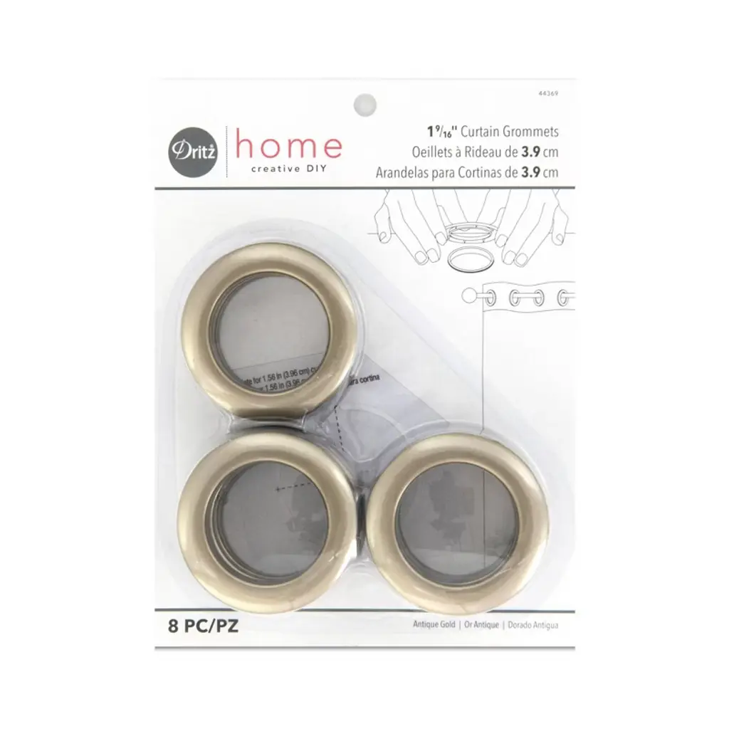 Use Dritz Home curtain grommets to transform a piece of fabric into a curtain panel. Easy to install, these grommets create a series of openings to insert a curtain rod through and allows your panel to hang.