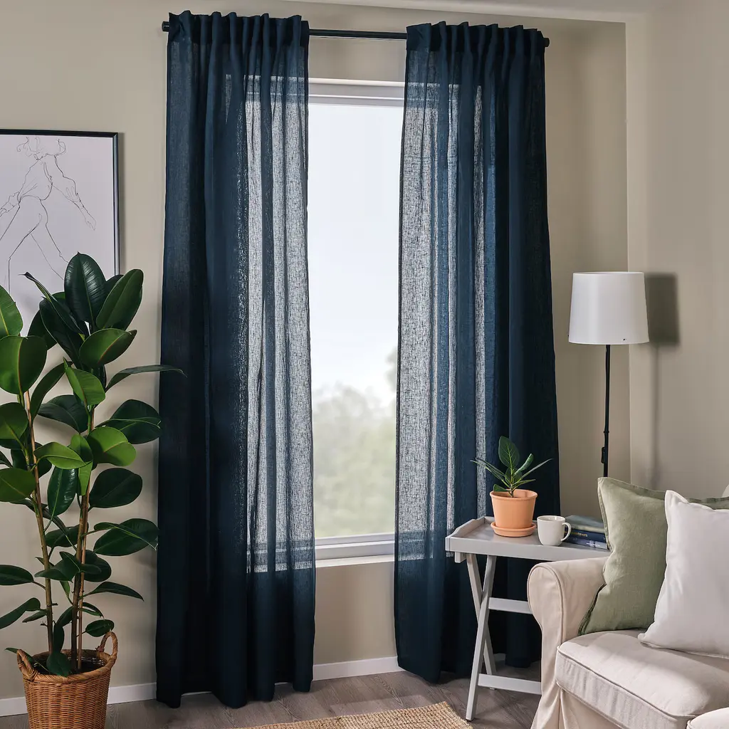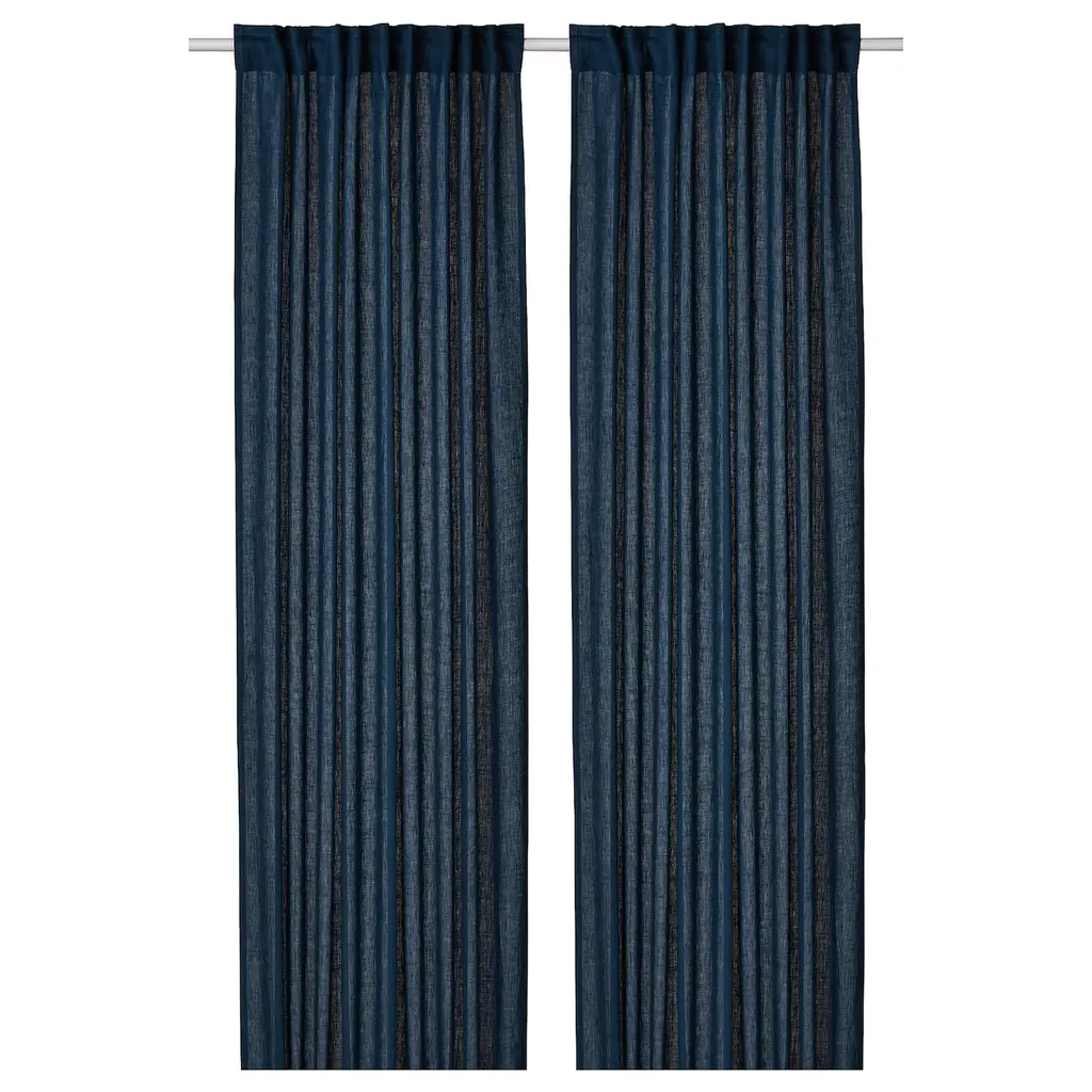 DYTÅG Curtains, 1 pair - dark blue 57x98 ". Durable and timeless linen with an irregular texture that feels firm but gets softer after each wash. Ideal for any season as the natural fibers breathe and allow air to pass through and circulate. Curtains, 1 pair included