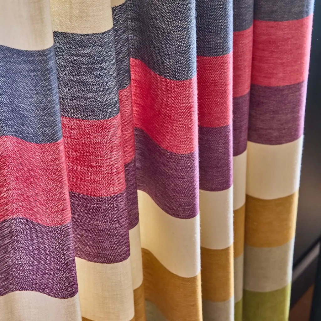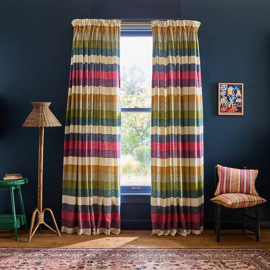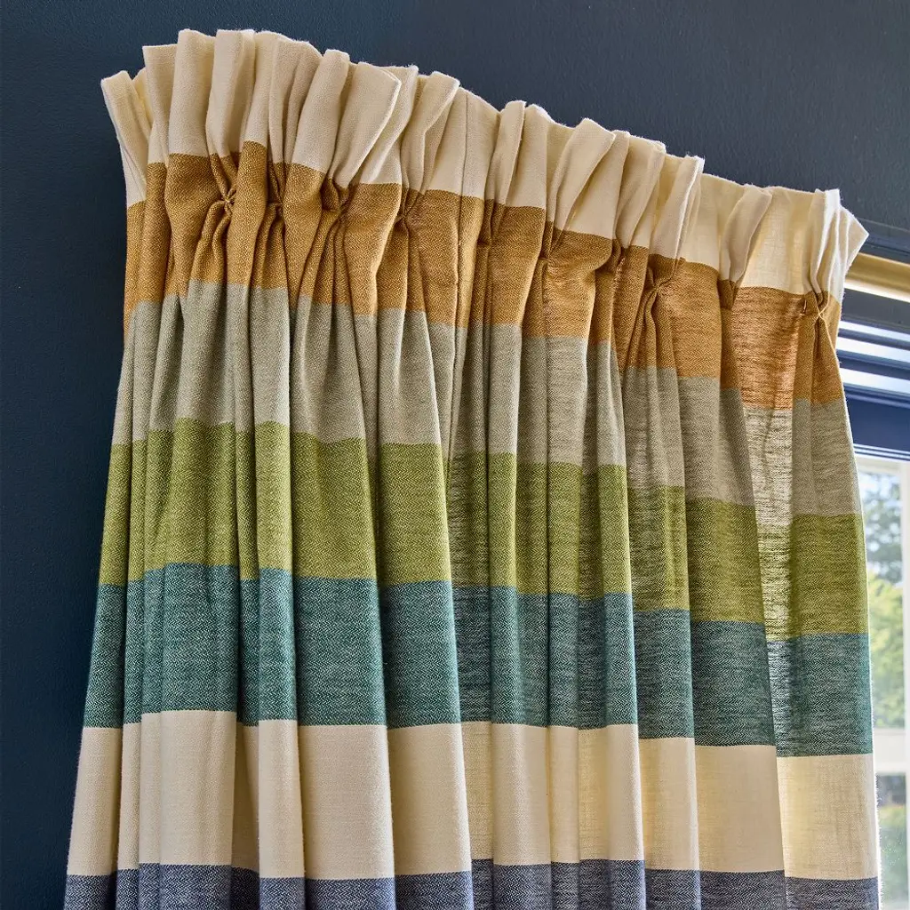 Bright and bold. In a horizontal stripe, these pleated cotton/linen curtains are OEKO-TEX® certified, lined, and lovely. A medium-weight drape elevates your space.