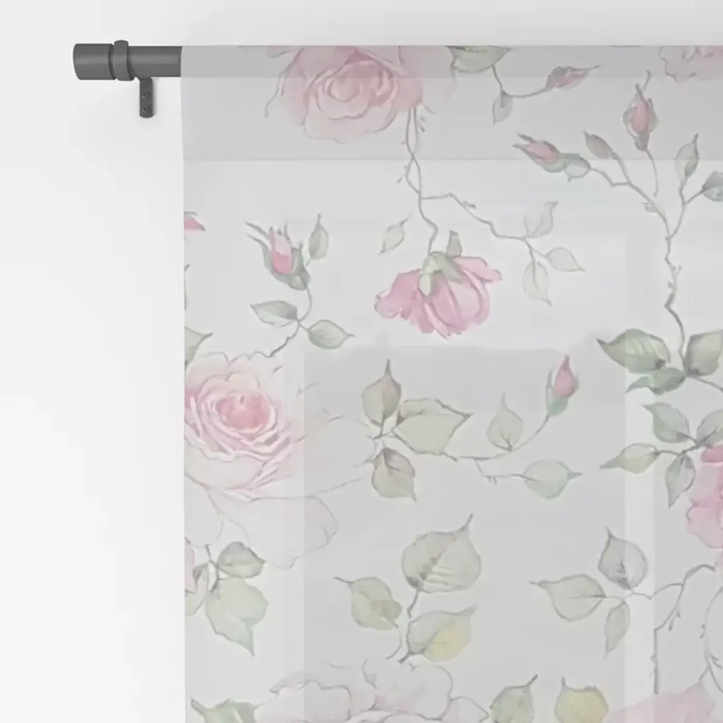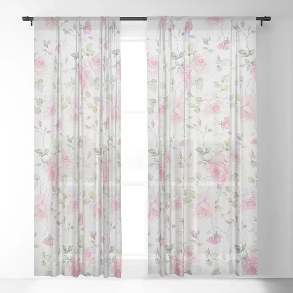 Elegant Blush Pink White Vintage Rose Floral Curtain