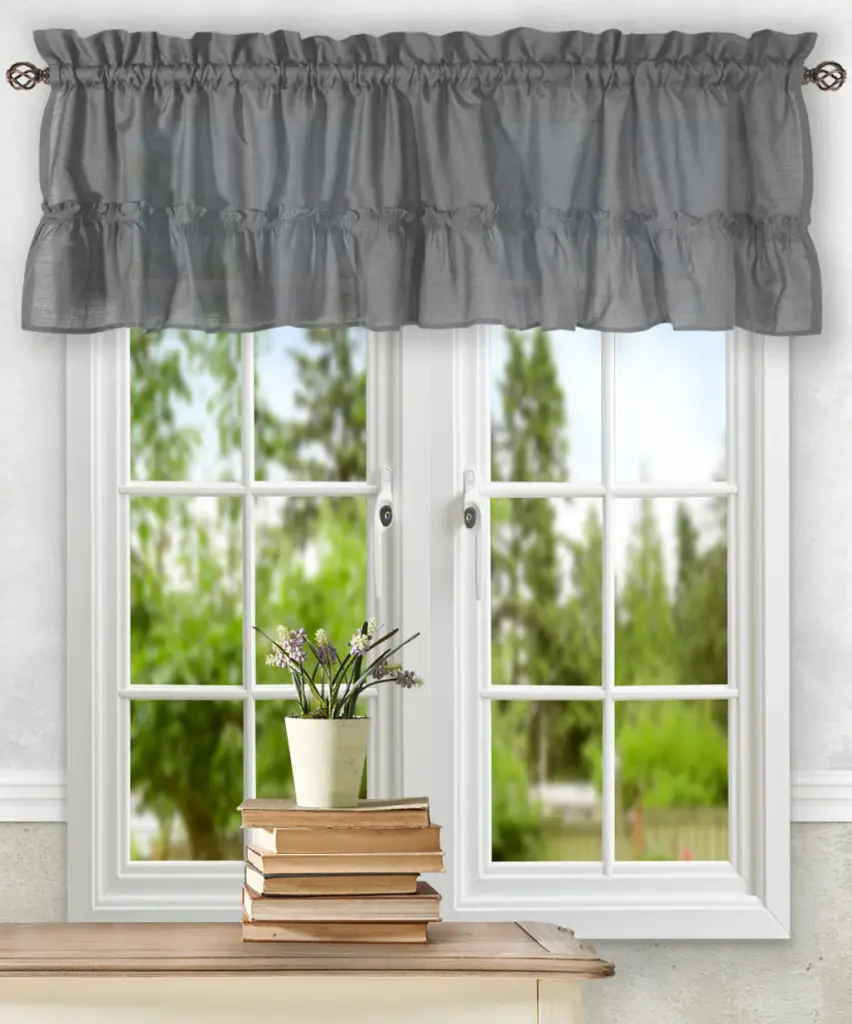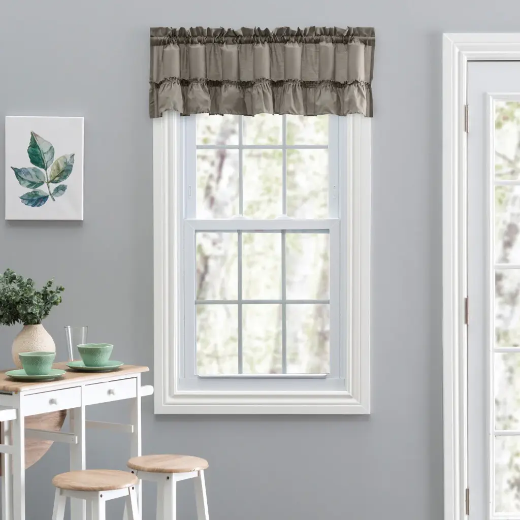 Ellis Curtain Stacey 54"x13" Ruffled Filler Valance, Grey