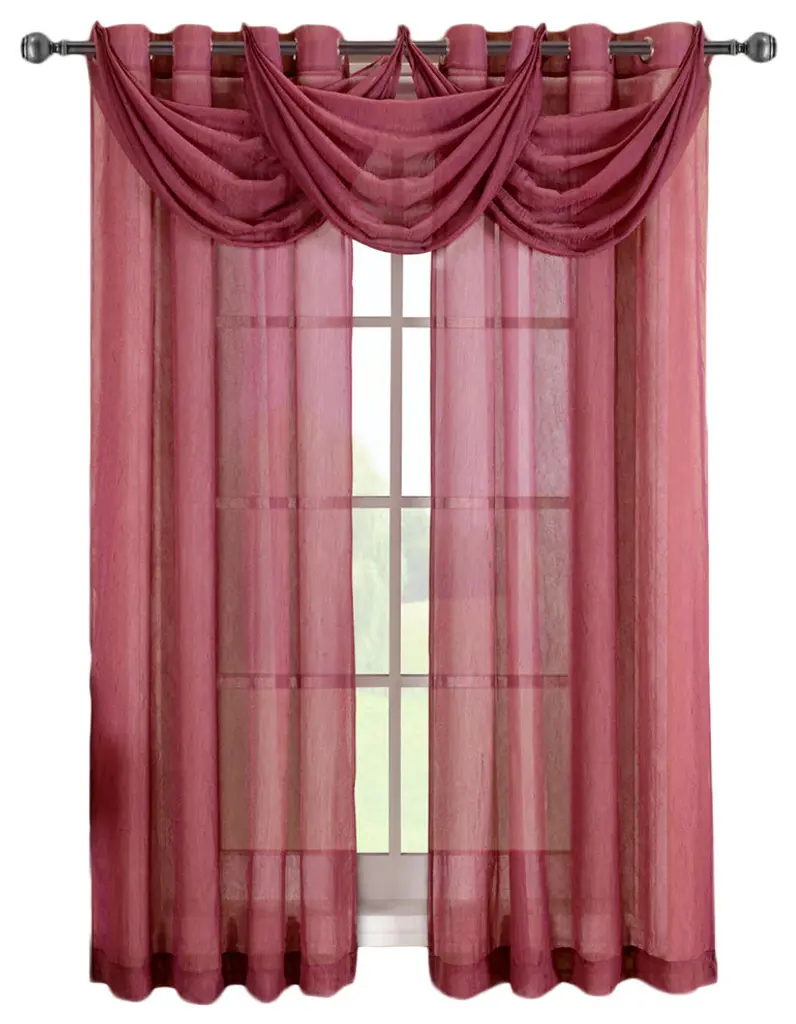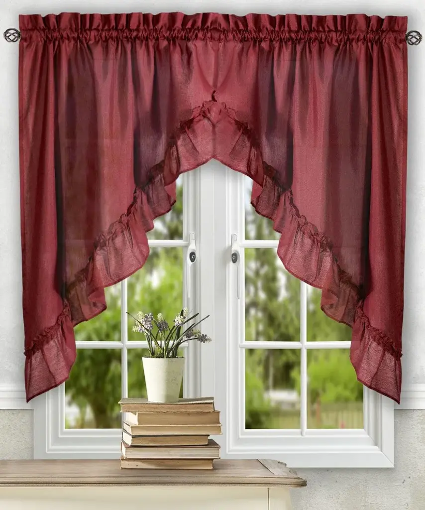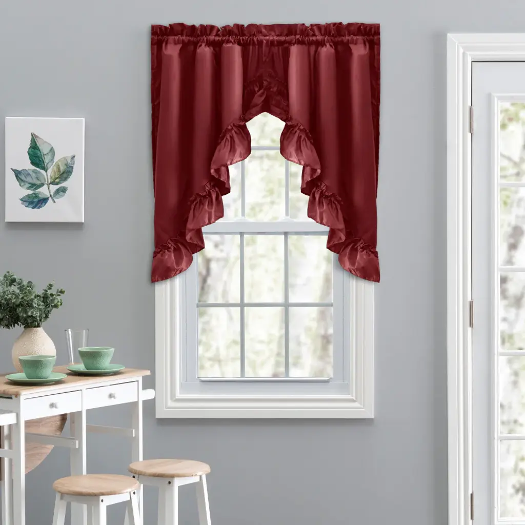 Ellis Curtain Stacey 60"x38" Ruffled Swag Curtain, Merlot