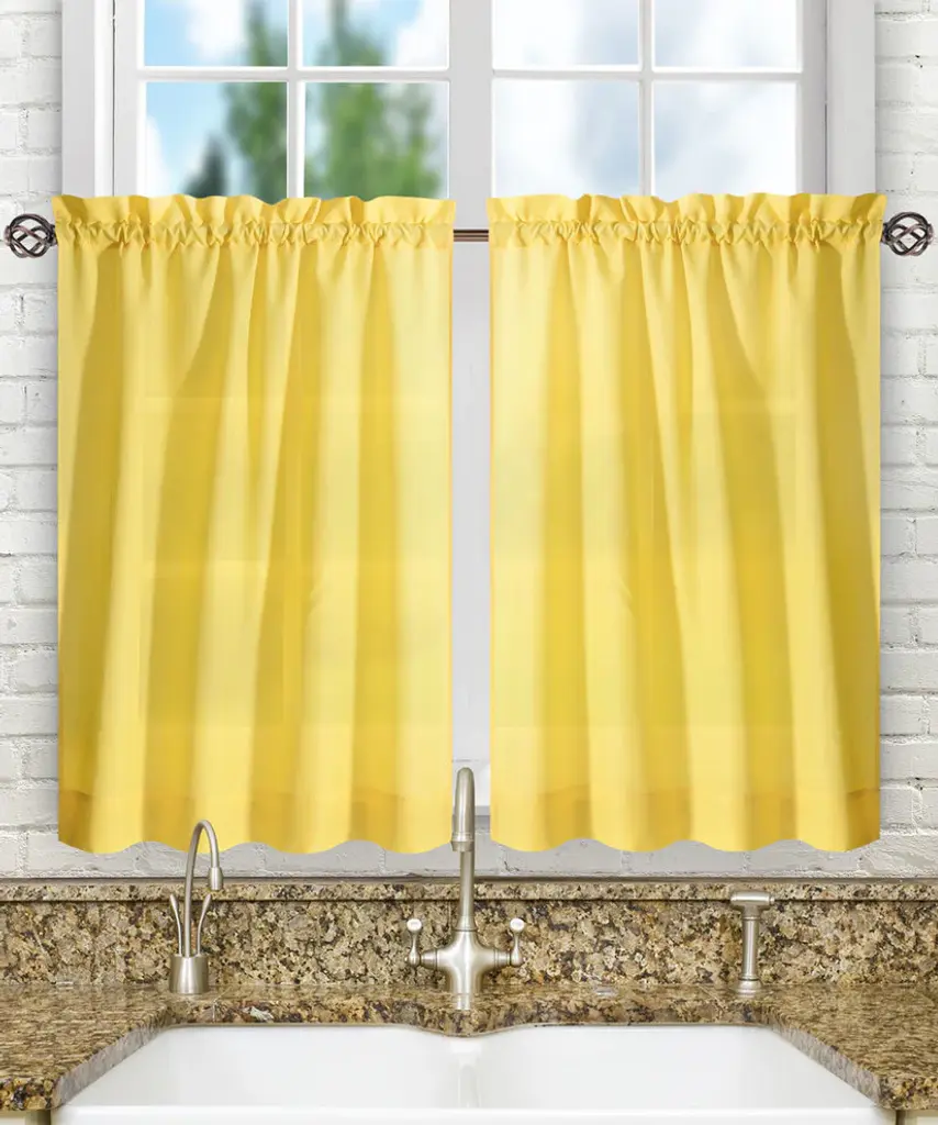 Ellis Curtain Stacey Tailored Tier Pair Curtains, Yellow, 56"x45"