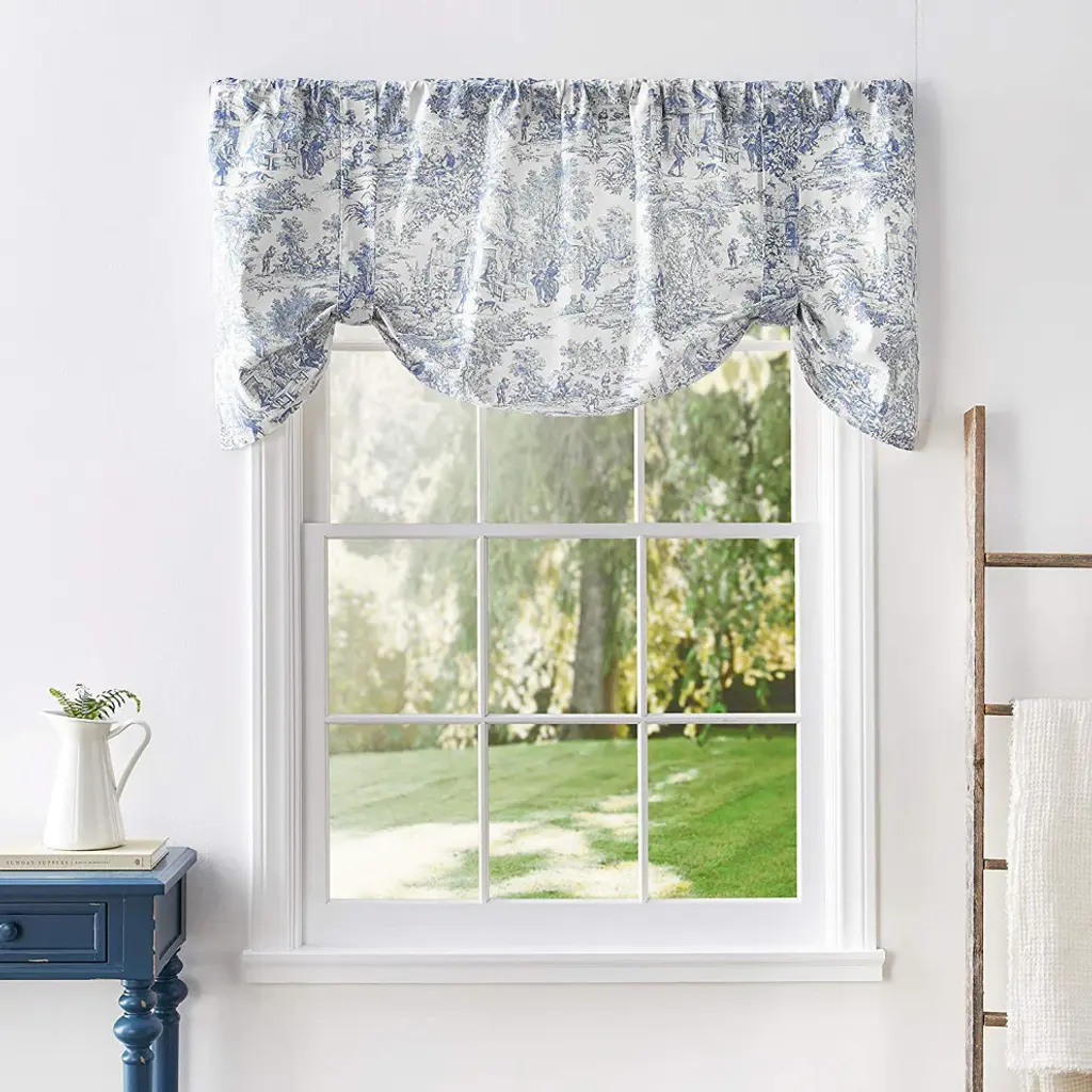 Ellis Curtain Victoria Park Toile 60"x24" Tie-Up Valence, Blue, Blue