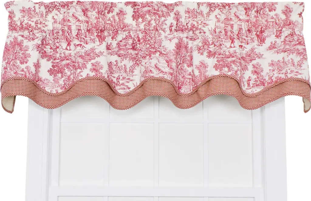 Ellis Curtain Victoria Park Toile Bradford Valance--Toile print fabric originated in France in the 18th century and immediately became a popular decorating pattern that still holds true today. The classic country scenes and soft cotton fabric will change and improve the look and feel of any room while adding a touch of style. Made with 100 percent cotton creates a smooth draping effect and softer texture that can''t be achieved with inferior synthetic fabrics. You are sure to get a valance that is beautiful and functional in a decorating pattern that''s timeless and long lasting. The Bradford is a 2-layer valance and is constructed with a 3'''' rod pocket and a 2'''' header. Width is measured overall 70''''. Length is measured overall 15'''' from header top (Ruffle above the rod pocket) to bottom of panel. -One Valance-Rod Pocket-Cotton