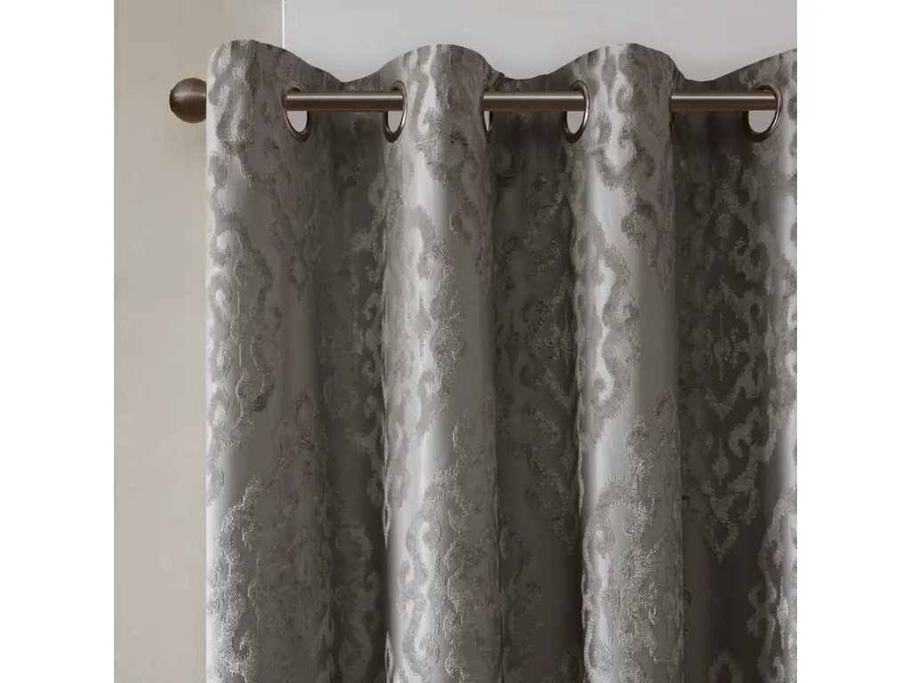 Elysia Knitted Jacquard Damask Total Blackout Grommet Top Curtain Panel
