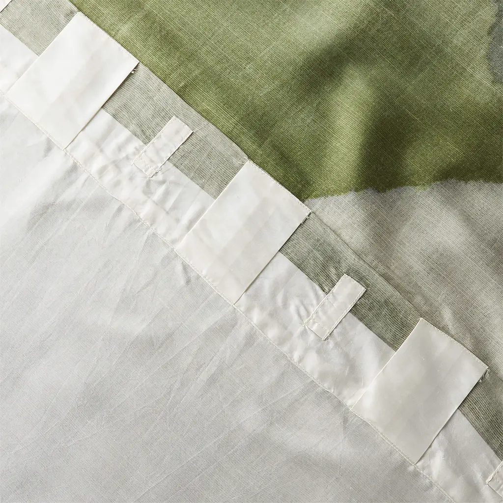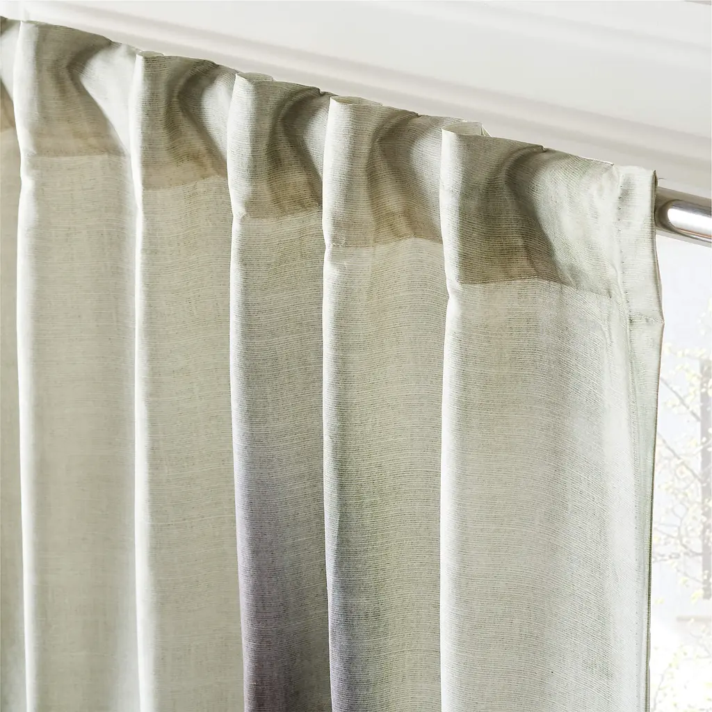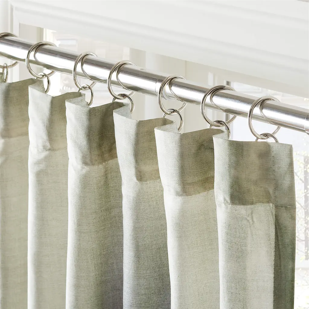 Naturally elegant silk curtain panel reproduces a resplendent Kristen Giorgi watercolor painting. Sumptuous silk dupioni brings out the luminosity of the green color palette, while natural slubbed texture lends depth and warmth. Hangs gracefully with rod pocket, back tab and drapery hook functionality. CB2 exclusive.