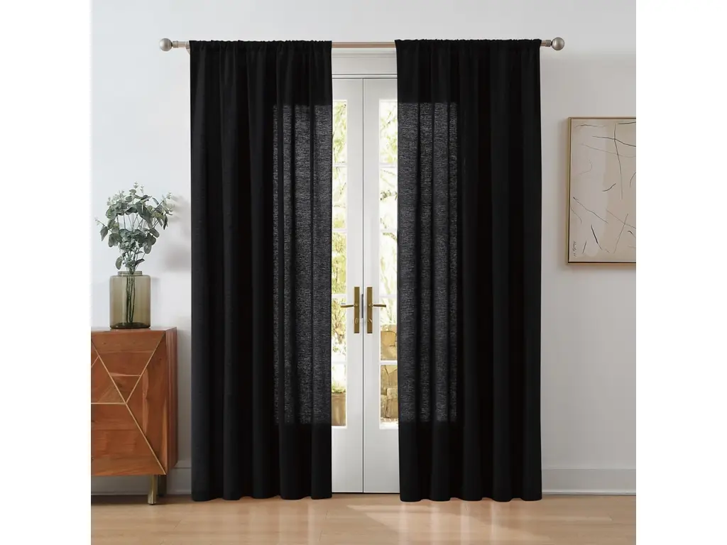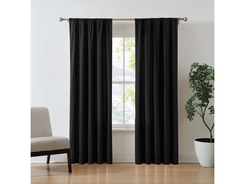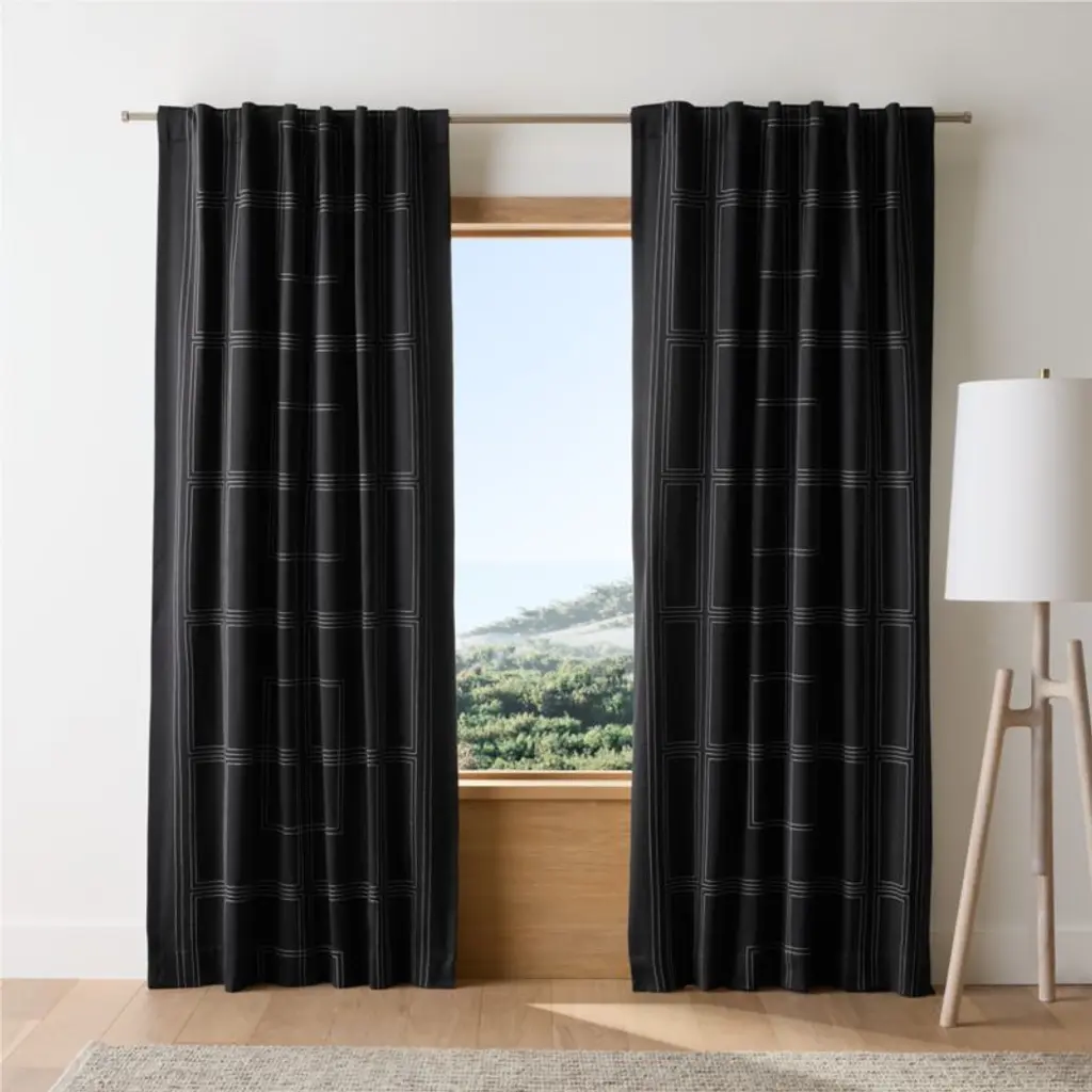Inspired by the elegant lines of Craftsman design, our embroidered curtain panel dresses the window with sophisticated geometry and a graceful drape. Crisp white embroidery stitches a linear pattern that references the architectural style's multi-paned windows. The navy organic cotton sateen in a rich weave gives off a subtle matte sheen that we adore, while the blackout liner prevents unwanted illumination from reaching your living room, dining room or bedroom. Hang the curtain panel from the back tabs or rod pocket to create a more laid-back gathered effect, or add a set of our curtain clips (sold separately).Try it on first. Since color representation may vary by screen, using a swatch is an easy way to see exactly how your favorite curtain panels will look in your home. Choose up to five free curtain swatches, and we'll ship them to you at no cost.Curtain hardware also available.Learn how to hang curtains in our guide.