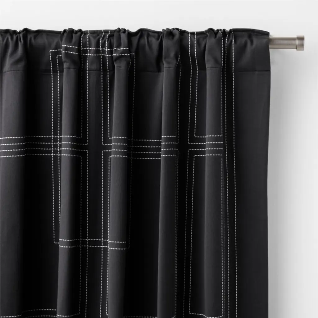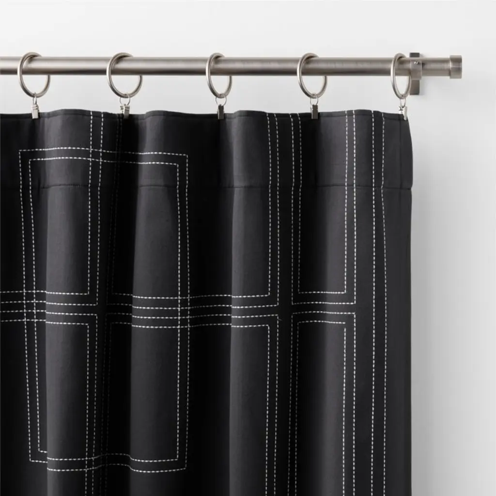 Inspired by the elegant lines of Craftsman design, our embroidered curtain panel dresses the window with sophisticated geometry. Crisp white embroidery stitches a linear pattern that references the architectural style's multi-paned windows. Crafted with a rich weave that drapes gracefully, the navy organic cotton sateen gives off a subtle matte sheen that we adore. Hang the semi-sheer curtain panel from the back tabs or rod pocket to create a more laid-back gathered effect, or add a set of our curtain clips (sold separately).Try it on first. Since color representation may vary by screen, using a swatch is an easy way to see exactly how your favorite curtain panels will look in your home. Choose up to five free curtain swatches, and we'll ship them to you at no cost.Curtain hardwarealso available.Learn how to hang curtains in our guide.