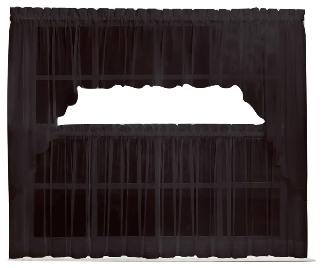 Emelia Sheer Solid Black Kitchen Curtain, Valance