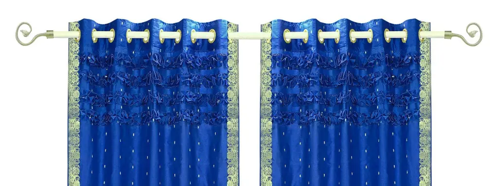 Grommet-top also known as ring top or eyelet top drapery provide a sophisticated and contemporary finish to the windows. Ring-tops have decorative rings attached to the drapes. Rings create a pleated look that is crisp and modern. Intricate ring trim at the top allows it to hang beautifully and adds further elegance. These curtains have a hand made frill design on the top. Sari Curtains / Drapes / Panels are the perfect choice for those looking for light, elegant drapes with a touch of luxury. It has smooth finish with a soft sheen and feels gentle and cool to the touch. Sheer curtains made of saris allow light in through windows but prevent people looking in when they are drawn. Story Behind the Art: The fabric of these curtains are weaved on a hand-loom in a small rural village in India and then hand-dyed. The artisans are a group of young hand-crafters who have moved from small villages to a big town in Central India and make various home decor items out of these exotic sari fabrics. This gives these wonderful artisans a way to have sustainable income via selling to the worldwide market on the internet. Your purchase supports local and home-based work where the artisans can easily tend to their families and pass these time-honored skills from one generation to the next.