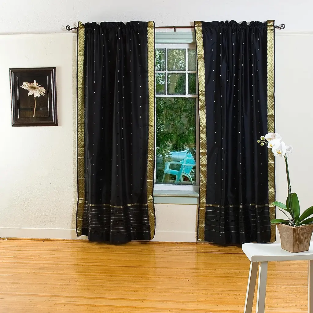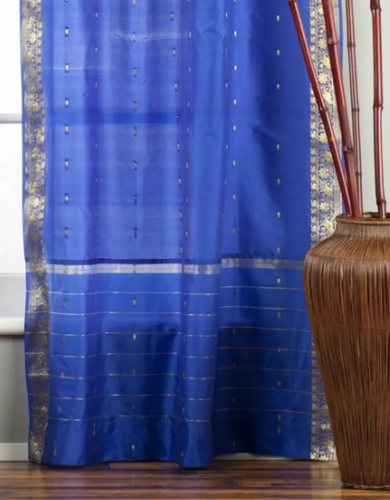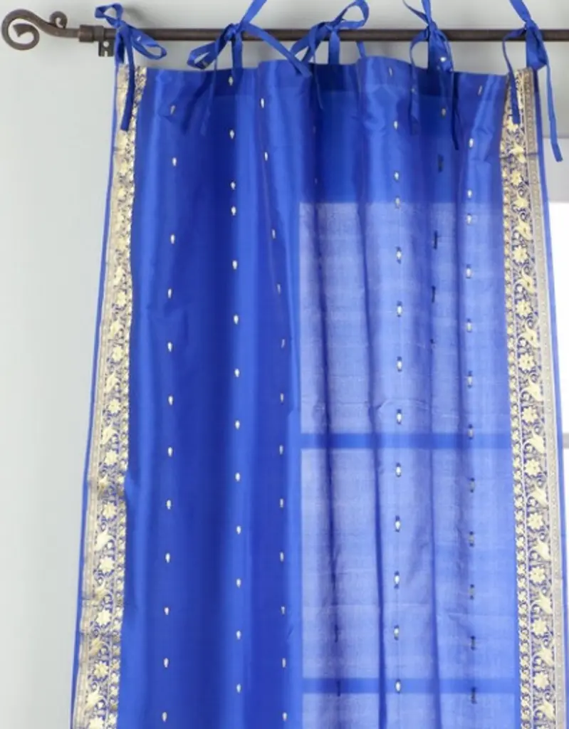 Add splendor to any room in your home with these Tie Top sari sheer curtains from India. These handmade drapes are heavily bordered with excellent artwork Sari Curtains / Drapes / Panels are the perfect choice for those looking for light, elegant drapes with a touch of luxury. It has smooth finish with a soft sheen and feels gentle and cool to the touch. Sheer curtains made of saris allow light in through windows but prevent people looking in when they are drawn. Story Behind the Art: The fabric of these curtains are weaved on a hand-loom in a small rural village in India and then hand-dyed. The artisans are a group of young hand-crafters who have moved from small villages to a big town in Central India and make various home decor items out of these exotic sari fabrics. This gives these wonderful artisans a way to have sustainable income via selling to the worldwide market on the internet. Your purchase supports local and home-based work where the artisans can easily tend to their families and pass these time-honored skills from one generation to the next.