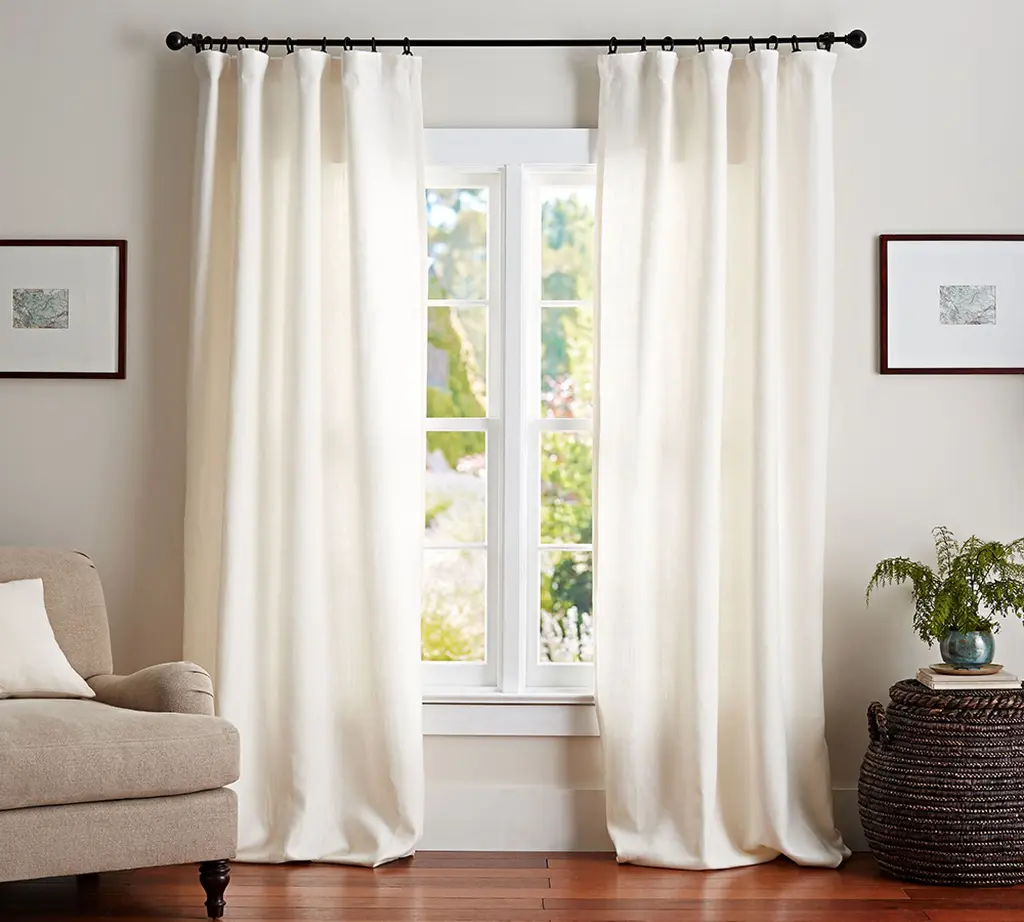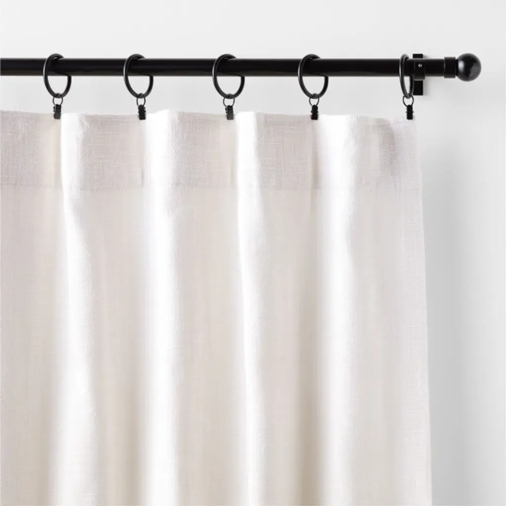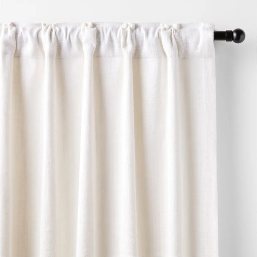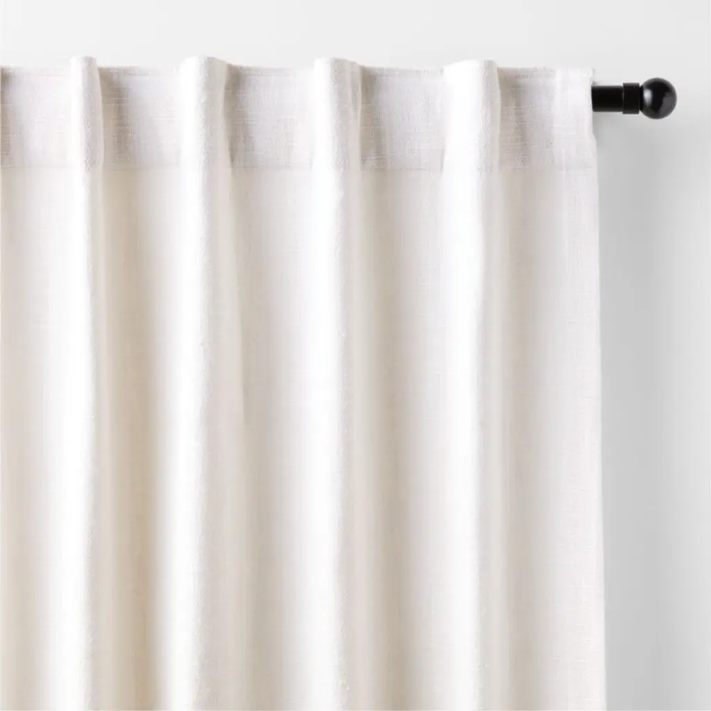 Woven with a substantial weight that gives it a rich, luxe feel, our heavily textured curtain panel is a truly special window covering. White sustainably sourced linen and cotton threads weave the panel, while the blackout liner prevents unwanted illumination from reaching your living room, dining room or bedroom. Try pairing the curtain with our crisp white bedding for a fresh, textural look. Hang from the back tabs or rod pocket to create a more laid-back gathered effect, or add a set of our curtain clips (sold separately).Try it on first. Since color representation may vary by screen, using a swatch is an easy way to see exactly how your favorite curtain panels will look in your home. Choose up to five free curtain swatches, and we'll ship them to you at no cost.Curtain hardware also available.Learn how to hang curtains in our guide.