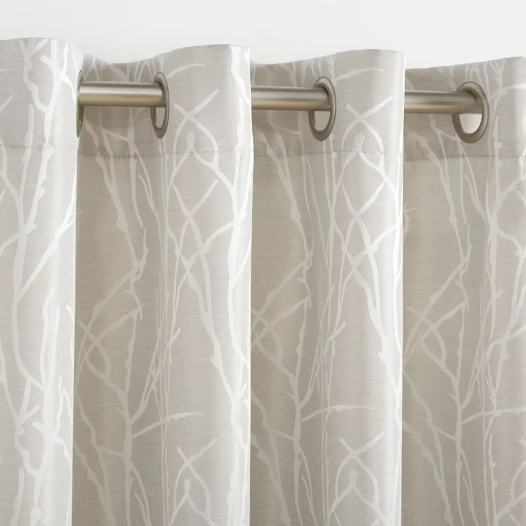 The Finesse linen look jacquard window curtain panels offer a luxurious contemporary linear branches graphic design that will grace any room in the home. This design combined with the rich warm look of linen will complete your room setting. The Finesse drapery is constructed with gorgeous, matte silver grommets and can be hung on your favorite curtain rod up to 1.25" diameter, adding yet another touch to the richness and luxury of your decor. Our curtain panels are perfect for any living room, bedroom, family room, dining room, bathroom and office.