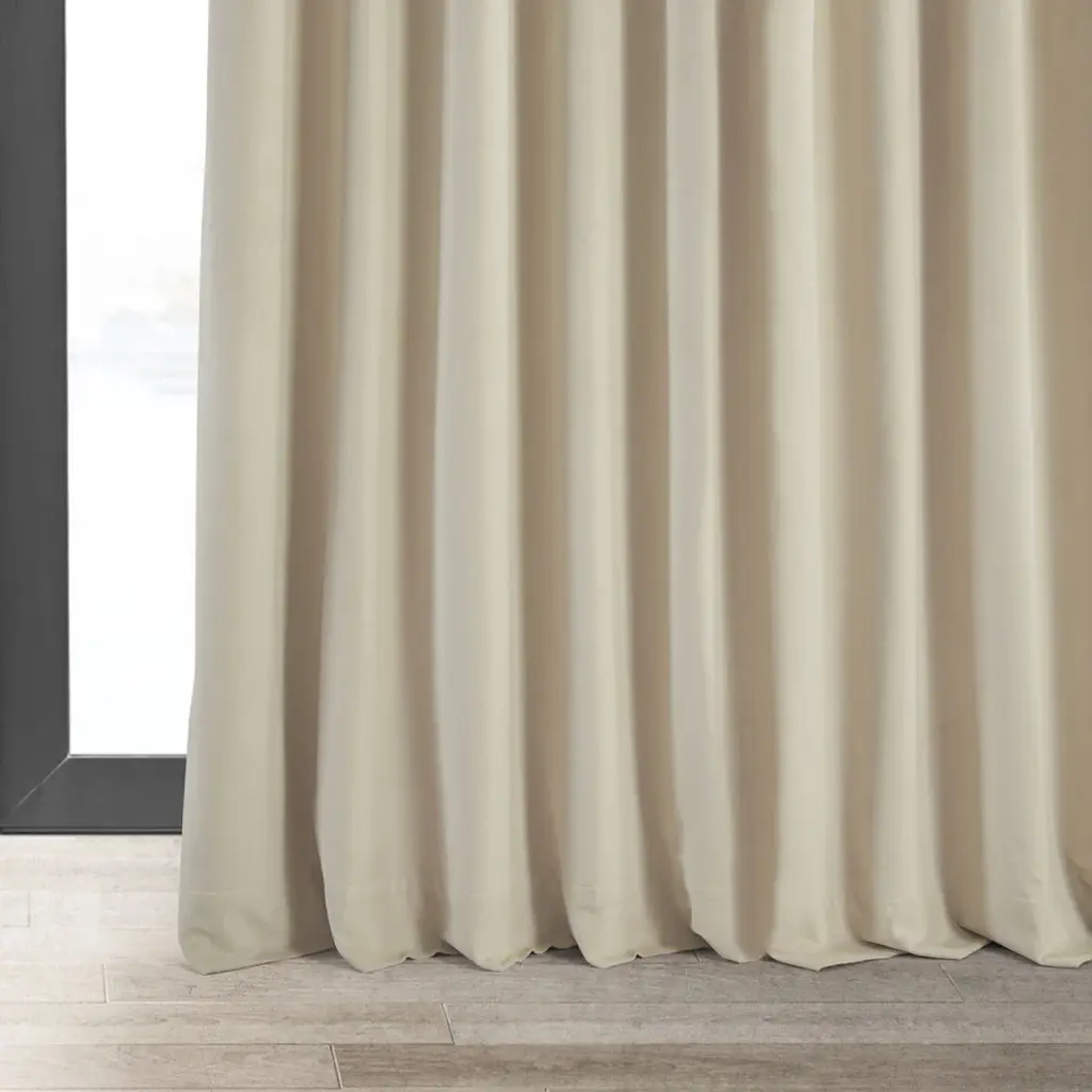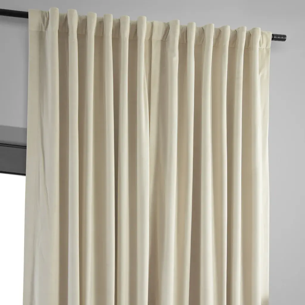 Extra Wide Blackout Velvet Curtain Single Panel, Neutral Ground, 100w X 96l