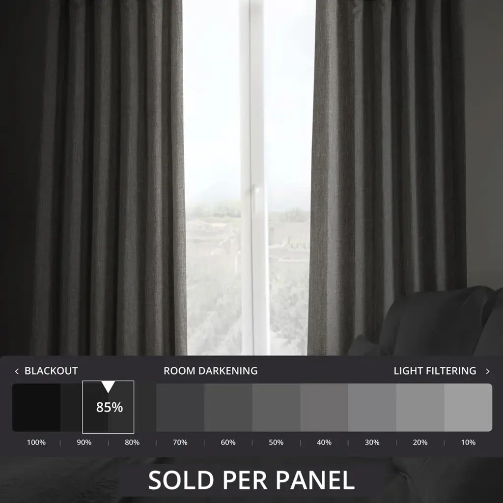 Now you do not have to decide between casual elegance and practicality. With our Faux Linen Blackout curtains, you can have it all. The face fabric is our easy care Faux Linen in a host of great colors, from dark like Iris Red and Dutch Cocoa to lights like Thatched Tan and Oyster