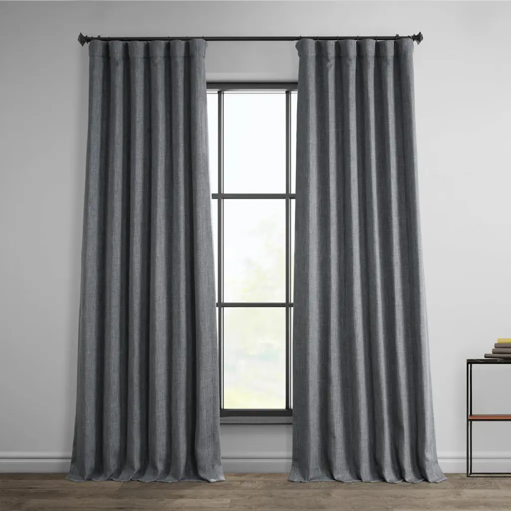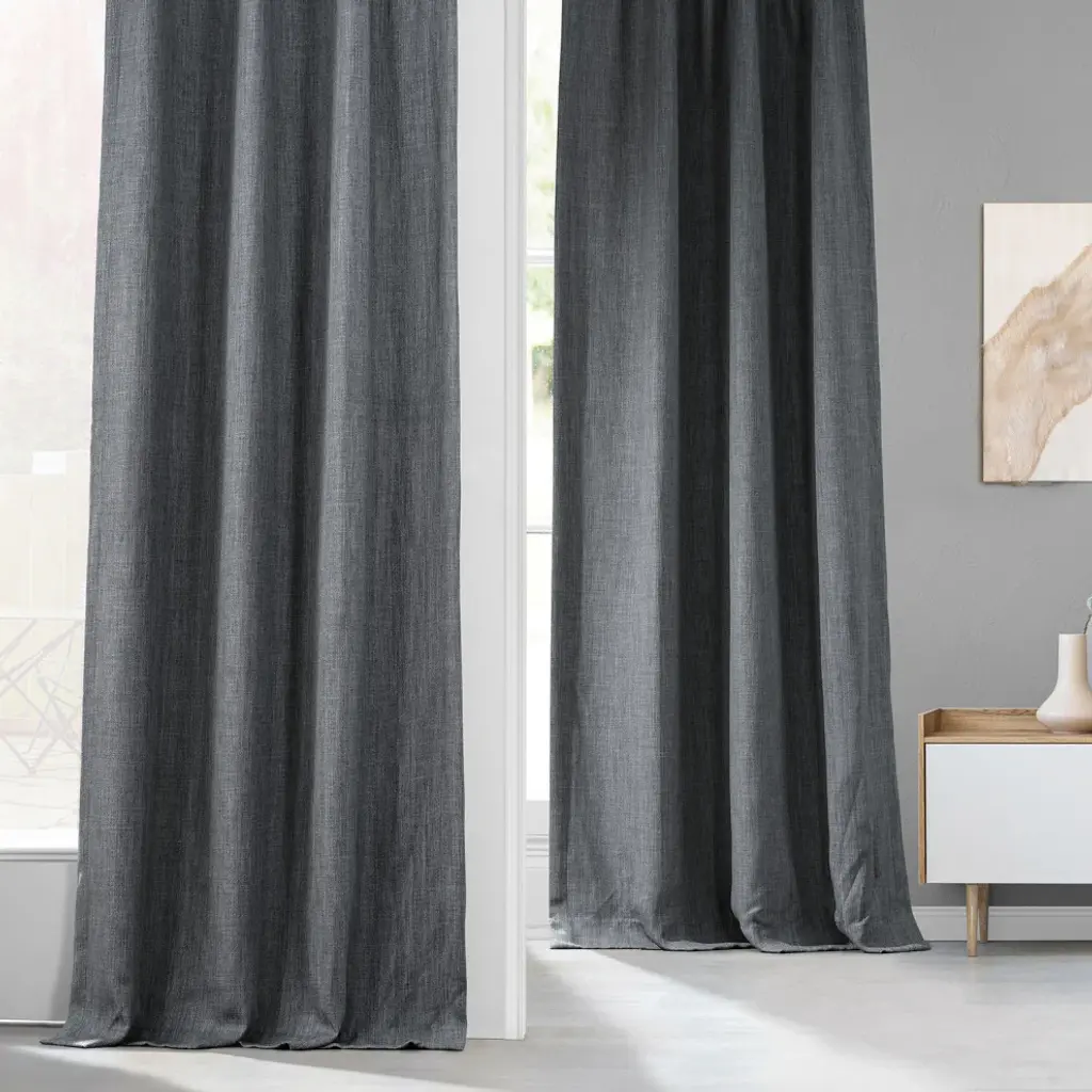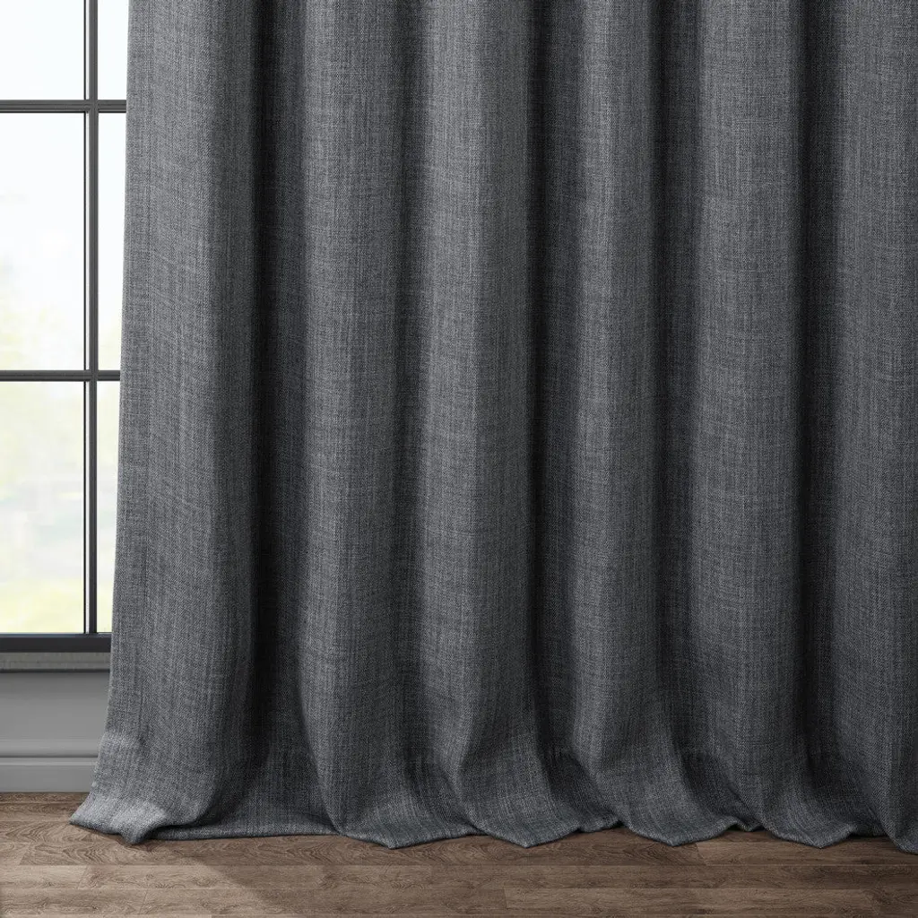 Faux Linen Darkening Curtain Single Panel, Dark Gravel, 50"x108"