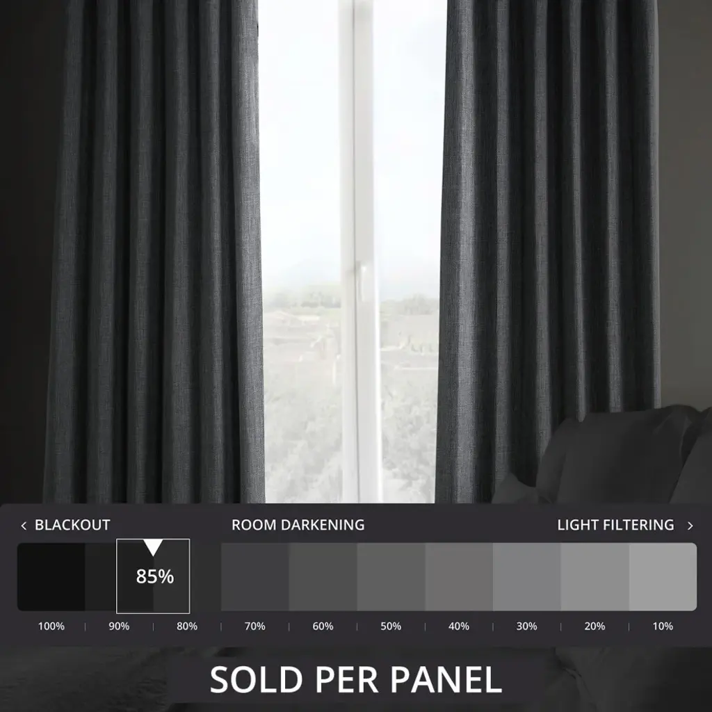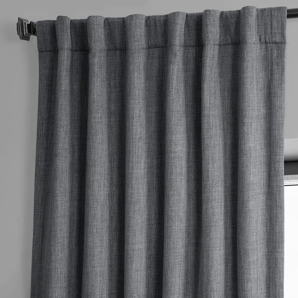 Faux Linen Darkening Curtain Single Panel, Dark Gravel, 50"x96"
