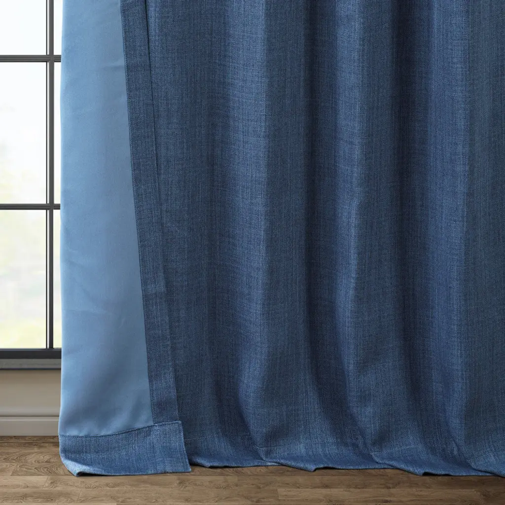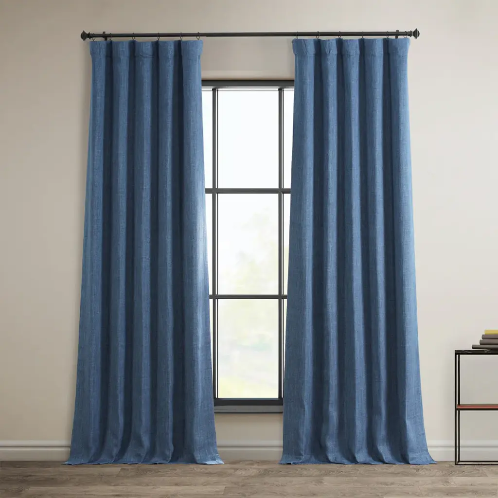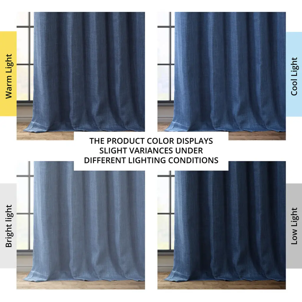 Faux Linen Darkening Curtain Single Panel, Denim, 50"x108"
