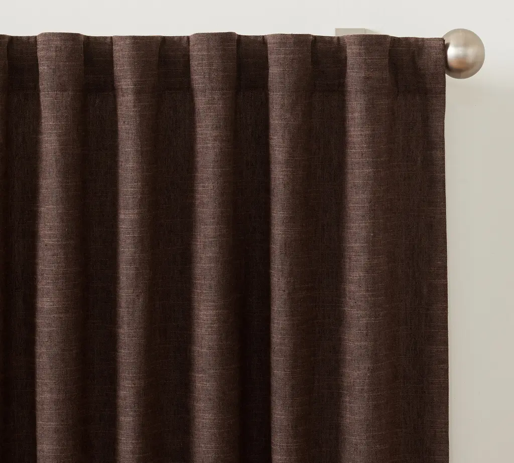 Now you do not have to decide between casual elegance and practicality. With our Faux Linen Blackout curtains, you can have it all. The face fabric is our easy care Faux Linen in a host of great colors, from dark like Iris Red and Dutch Cocoa to lights like Thatched Tan and Oyster