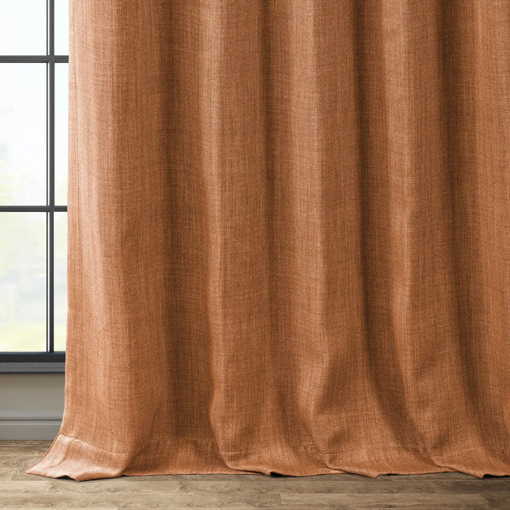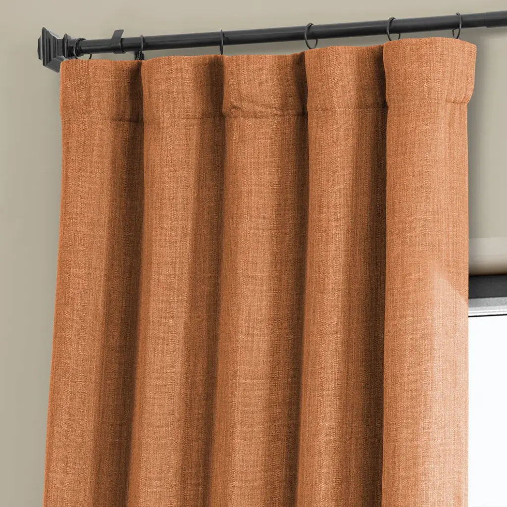 Faux Linen Darkening Curtain Single Panel, Desert Orange, 50"x120"