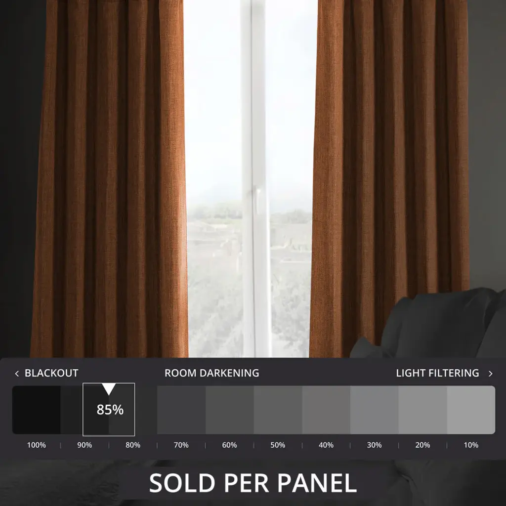 Faux Linen Darkening Curtain Single Panel, Desert Orange, 50"x84"