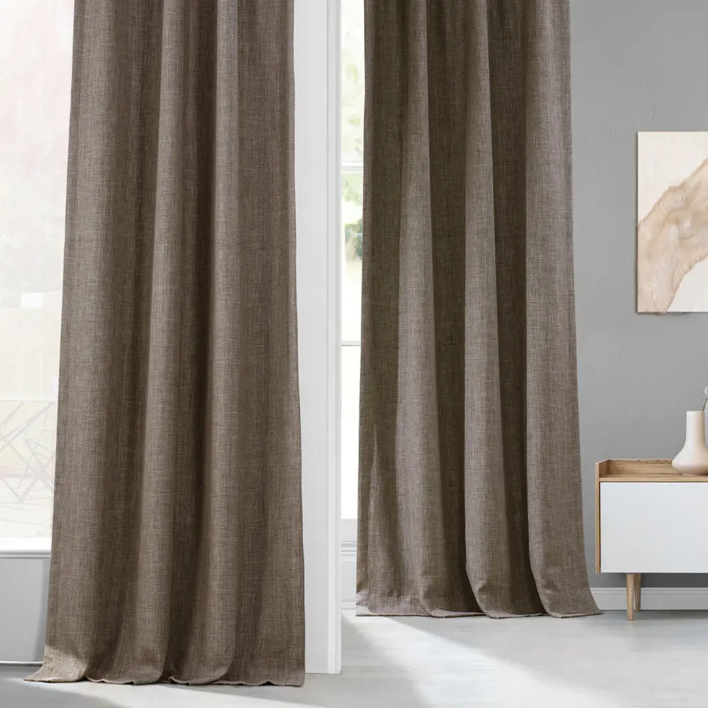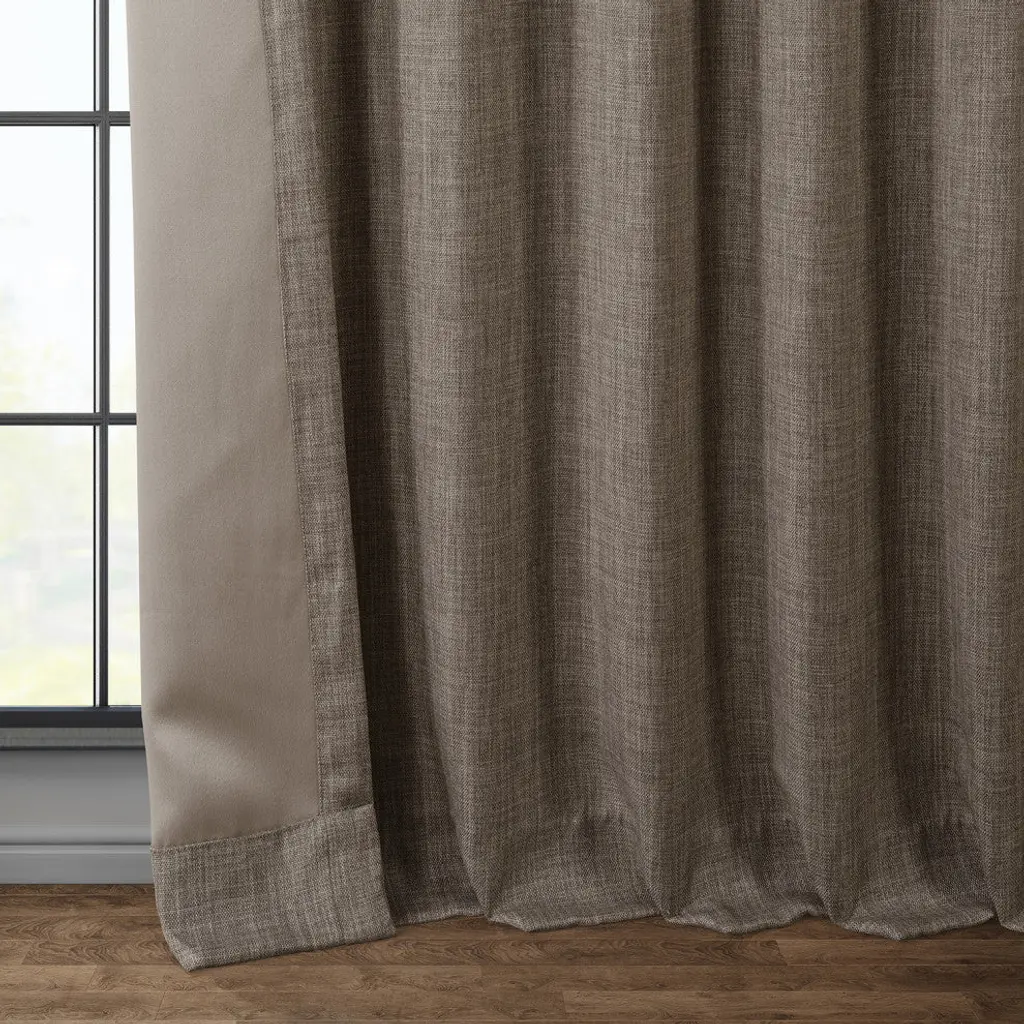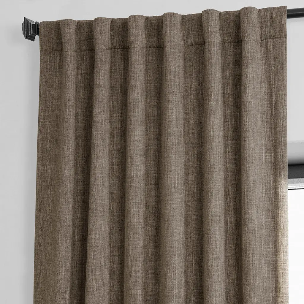Faux Linen Darkening Curtain Single Panel, Dutch Cocoa, 50"x84"